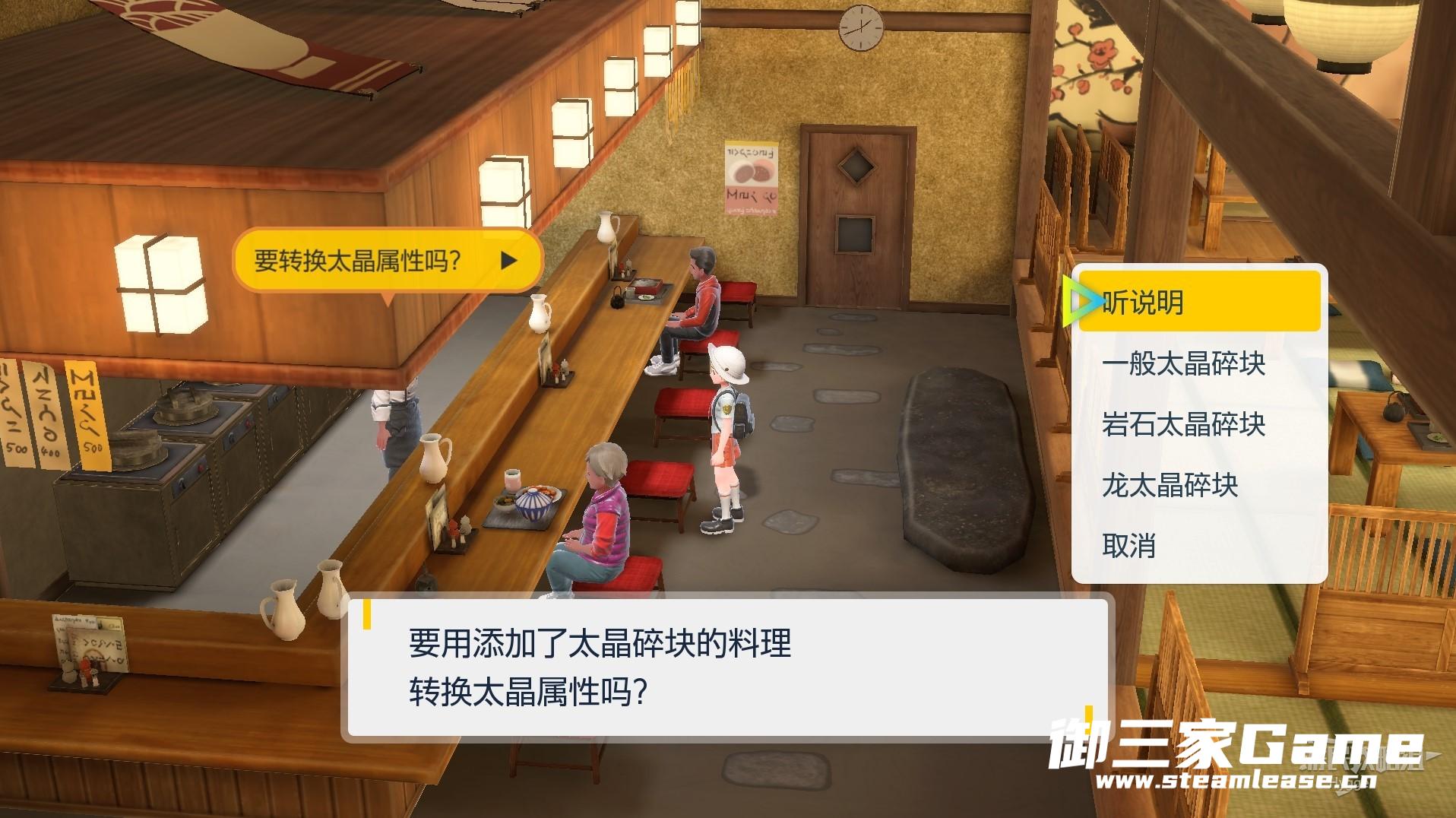 在宝食堂中与厨师交谈,选择对应属性的太晶碎块转化宝可梦的太晶属性。