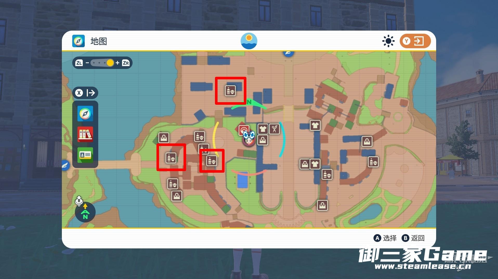 圆模镇中的面包店位置如下。