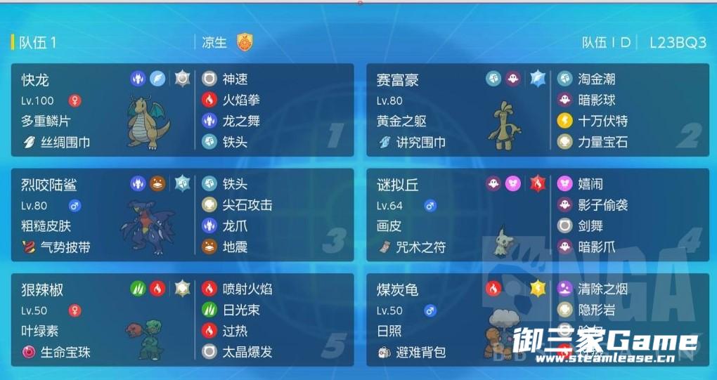 裂咬陆鲨 252攻击 252速度 在对面有明显弱点的时候会出.大部分时间还是上面3个大哥解决。