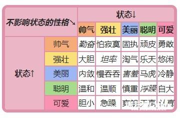 类似性格会对能力产生影响,性格同样对宝可梦的状态也会产生影响: