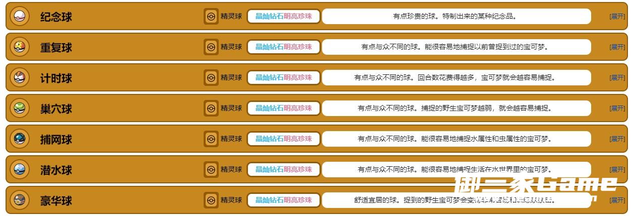 《宝可梦》系列中出现了38种精灵球,每种精灵球的功能都不尽相同:有些精灵球有助于捕获,而有些只有在捕获后才会起作用。第三世代之后,每种精灵球在打开时都会有独一无二的动画效果。