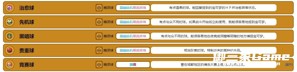 这些精灵球为洗翠地区的精灵球,大部分可经工艺制作获得。其中精灵球、超级球、高级球与沉重球与现代不同;起源球为重要物品。奇异球没有任何方法获得,但透过Pokémon HOME传送《传说 阿尔宙斯》的宝可梦到《晶灿钻石/明亮珍珠》中,或是将《剑/盾》和《晶灿钻石/明亮珍珠》的宝可梦传送到《传说 阿尔宙斯》中,这宝可梦的精灵球就会变成奇异球的模样。