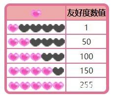 友好度以心形图标表示,每当友好度累计至特定数量时,会增加友好度的一颗心。交换出去后再度回归的宝可梦,如果交换之前已经拥有了友好度,原先的友好度将不会归零或减少。其中,在宝可拍乐乐和宝可清爽乐中完成行动后,宝可梦头上冒出心形标记即表示提升了友好度。