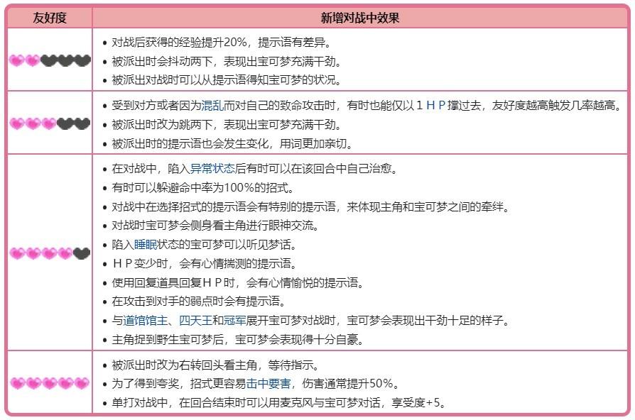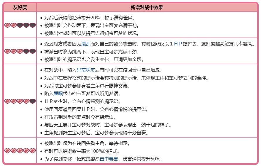 友好度在对战中的影响只出现在和普通训练家或野生宝可梦的对战中,在超级进化后或者在对战设施和连接对战时则不会有任何反应。