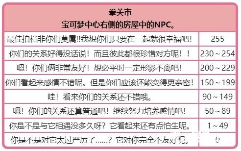 《晶灿钻石/明亮珍珠》延续了《剑/盾》关于亲密度与友好度合并的变更,宝可表的“亲密度检测器”改为“友好度检测器”,但其他关于亲密度的对话没有更改。亲密度与友好度指的是相同的数值。