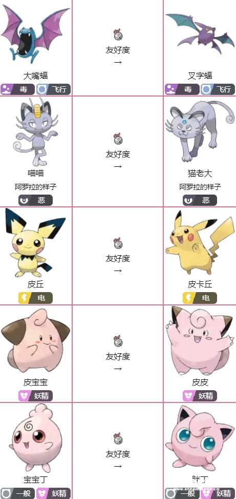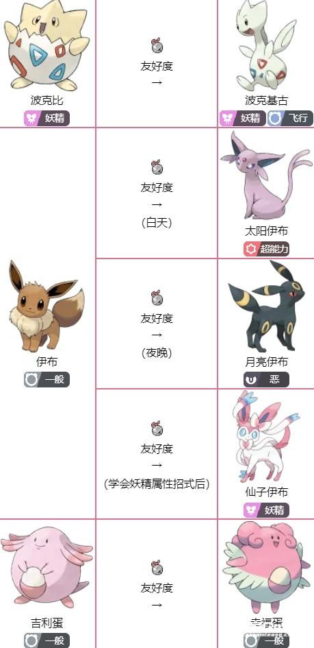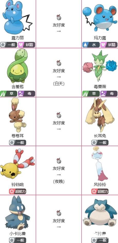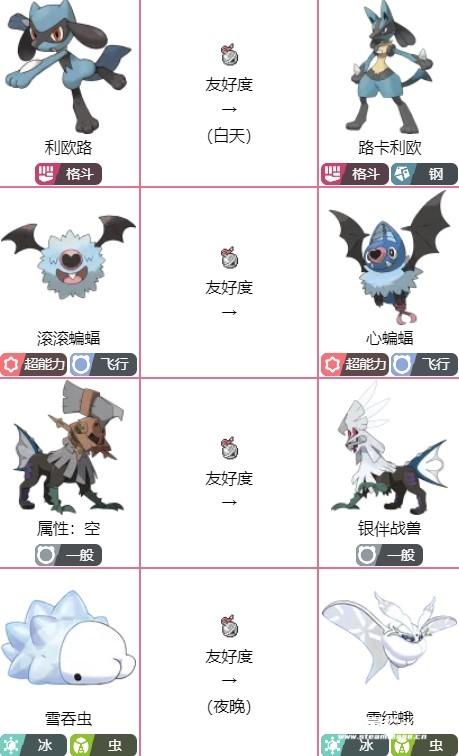 以下宝可梦的友好度必须要达到158或以上时才可以进化:
