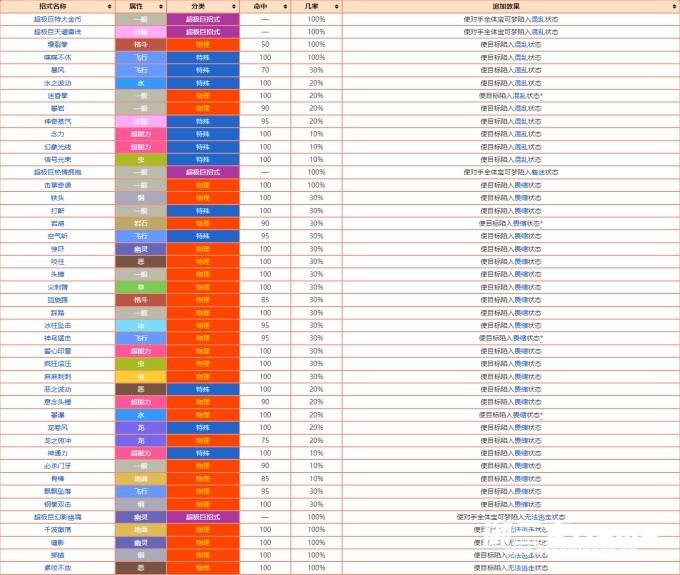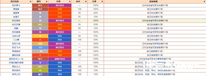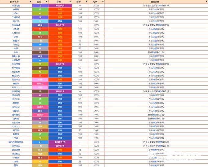 追加效果都是具有一定概率触发的、对攻击方有利的效果。以下的招式附加效果属于追加效果: