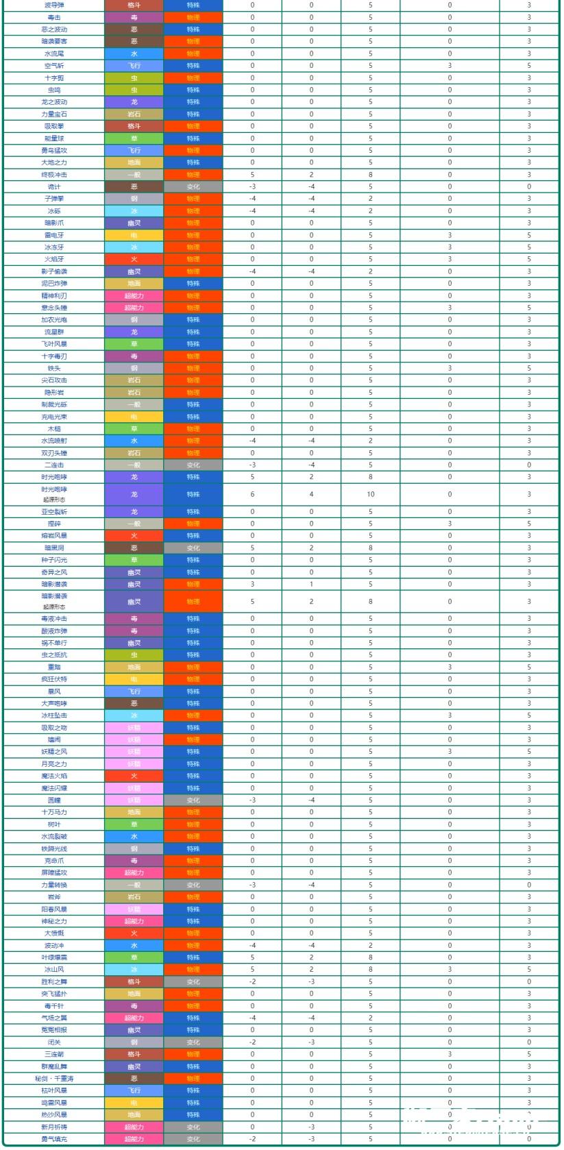 下面列出了《传说 阿尔宙斯》中所有招式与行动顺序相关的修正数值。数值为正,意味着下次行动的计时器会相对于默认值增加,从而让行动顺序延后;数值为负,意味着下次行动的计时器会相对于默认值减少,从而让行动顺序提前。