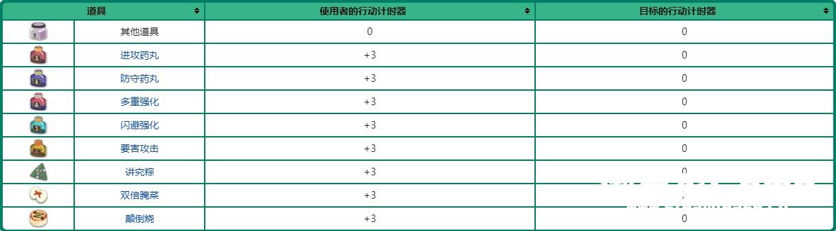 先制招式:先制招式的优先度被修改为减少下次行动计时器的默认值。