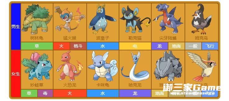 最初的伙伴即最初能拿到的搭档宝可梦。