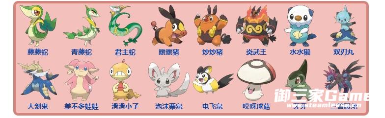 初次开始游戏时,玩家可以在图鉴中看到下列宝可梦。