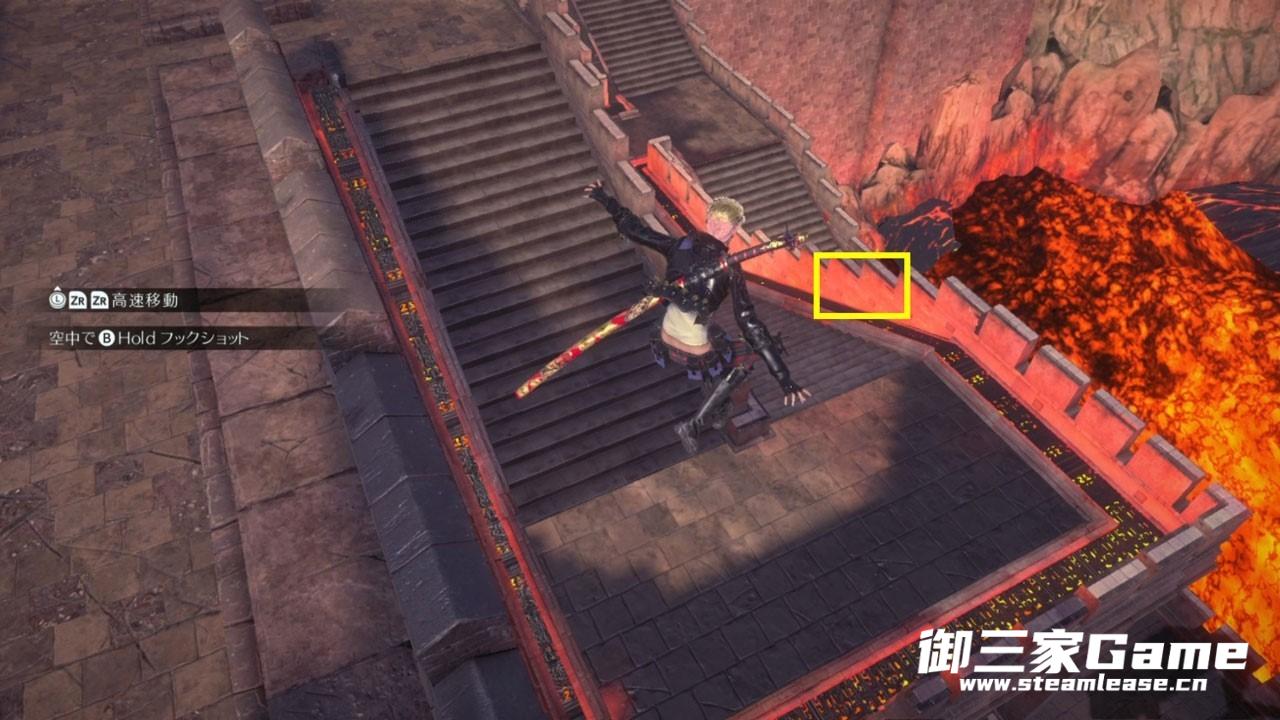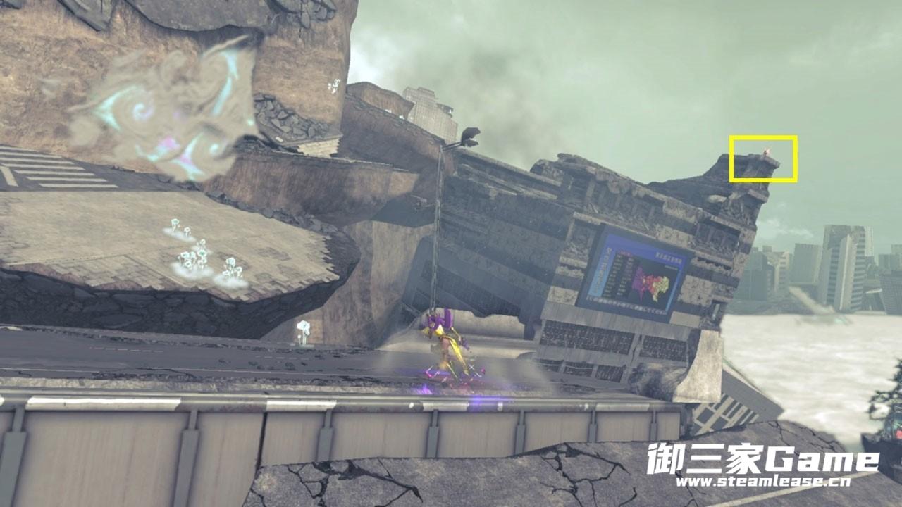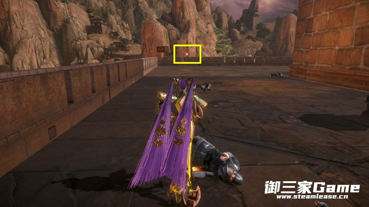 ①过了开头倒塌的桥之后,先不要进入正前方的建筑,往上爬,在左侧旗子附近可以看到