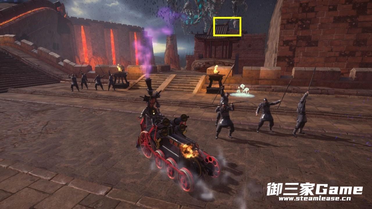 ②在猫咪所在位置的对面,大门右侧开阔区域建筑的屋顶上