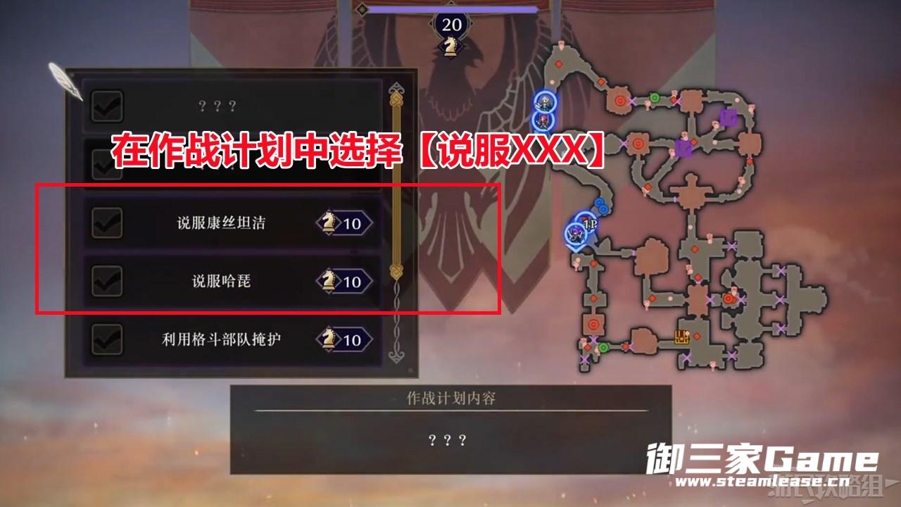 在EP4最终战的作战计划中会出现「说服」特定角色的选项。如果想要在战斗中说服该角色作为同伴的话,需要提前在作战计划中选择说服。