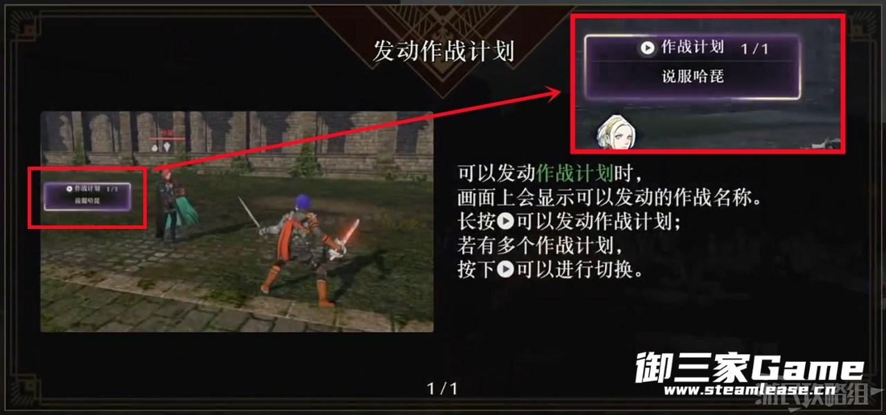然后在战斗中靠近要说服的角色时,游戏画面左侧会出现作战计划命令提示,按住对应按键即可执行说服。