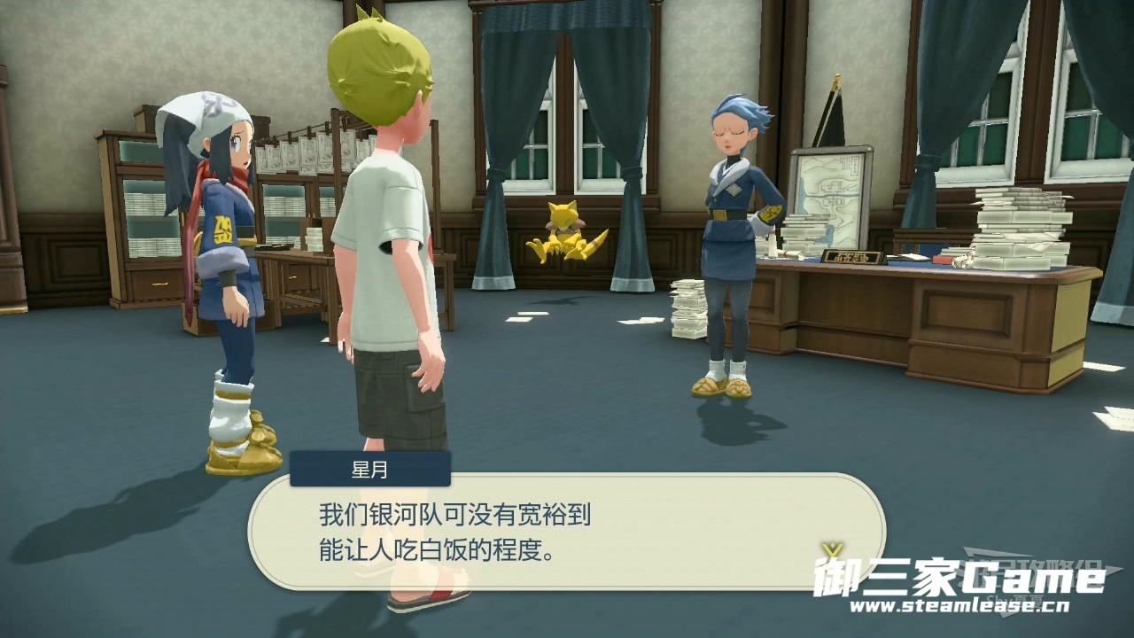 被拉苯博士叫醒后熟悉一下基本的操作,然后去追赶博士,路上会拾取【阿尔宙斯手机】,在博士的介绍下,了解了本作的宝可梦投球与捕获,和之前有了很大的区别,需要适应一下,同时获得【精灵球×50】(乱扔也没事,这些都不是你的)。捕捉到火球鼠、水水獭、木木枭,就可以跟着博士回村了。