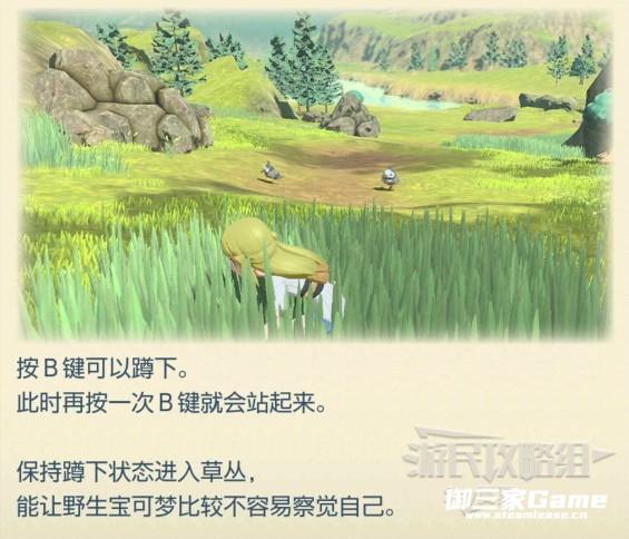 上文说过,有些宝可梦需要隐藏自己进行捕捉,所以看到草丛先蹲下,然后寻找时机。