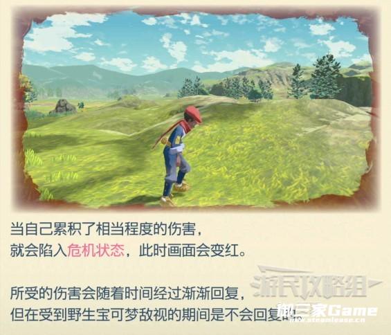 虽然没有血条,但是被袭击会掉血、从高处掉落会掉血,大部分开放世界游戏会受伤的方法在《阿尔宙斯》的世界里也会受伤。