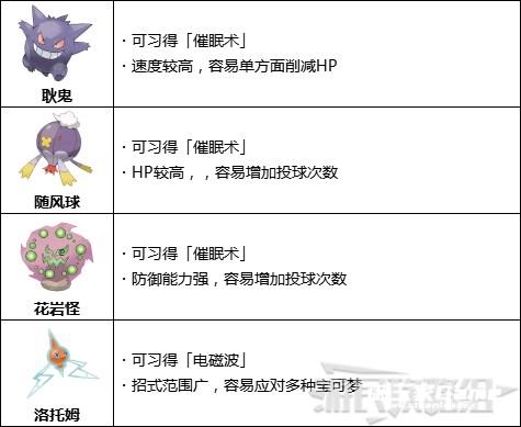 等级较高的宝可梦大多数都习得了「舍身冲撞」,经常会对自己造成伤害,从一定程度上提升了捕捉难度,因此可以使用一些能让自伤招式无效化的幽灵属性宝可梦。