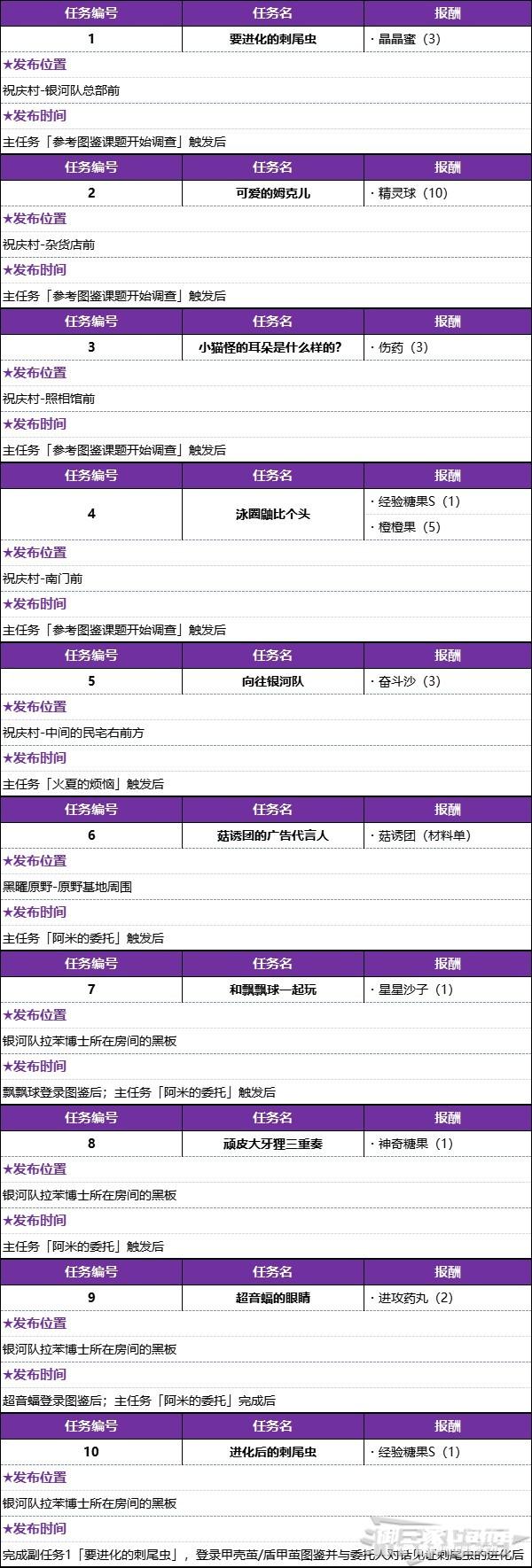 根据任务内容的不同,除了从祝庆村村民NPC处接受的副任务之外,还有一些副任务可以从黑板上接取,完成后可以增加宝可梦图鉴的研究点数。另外需要注意的是,如果不先从黑板接受一次委托的话,直接与NPC本人对话是不会触发任务的。