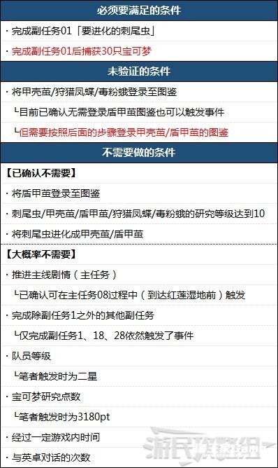 只有在看到银河队总部前的刺尾虫进化成盾甲茧的事件才会触发副任务10。进化事件的触发条件目前有些存疑,下面列出正在验证的触发条件。