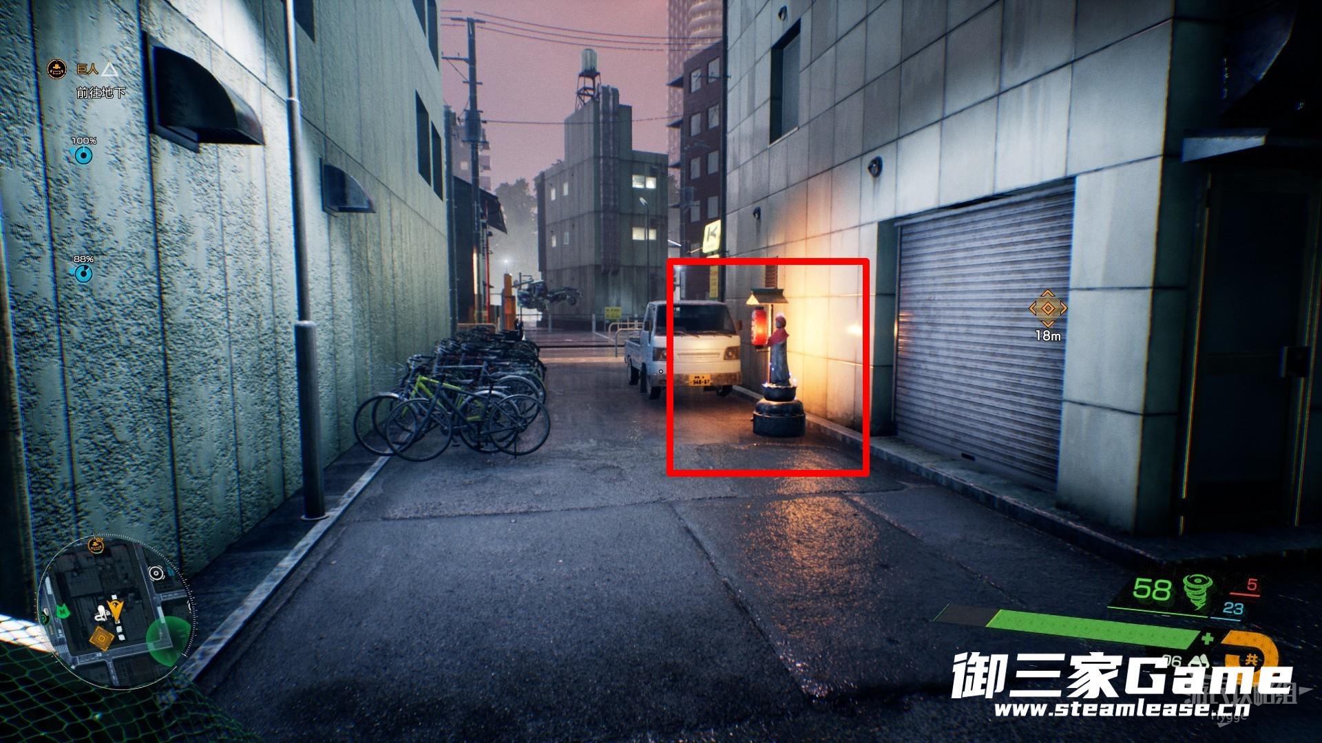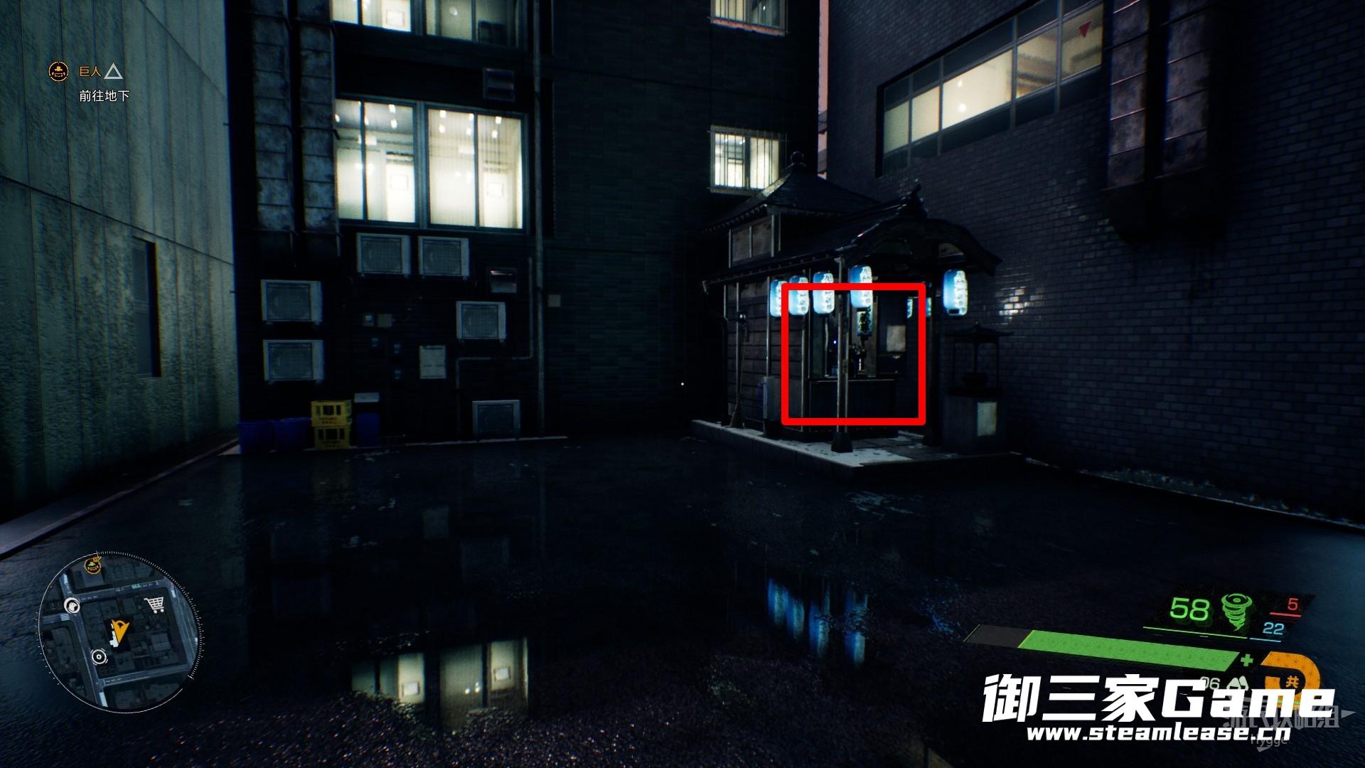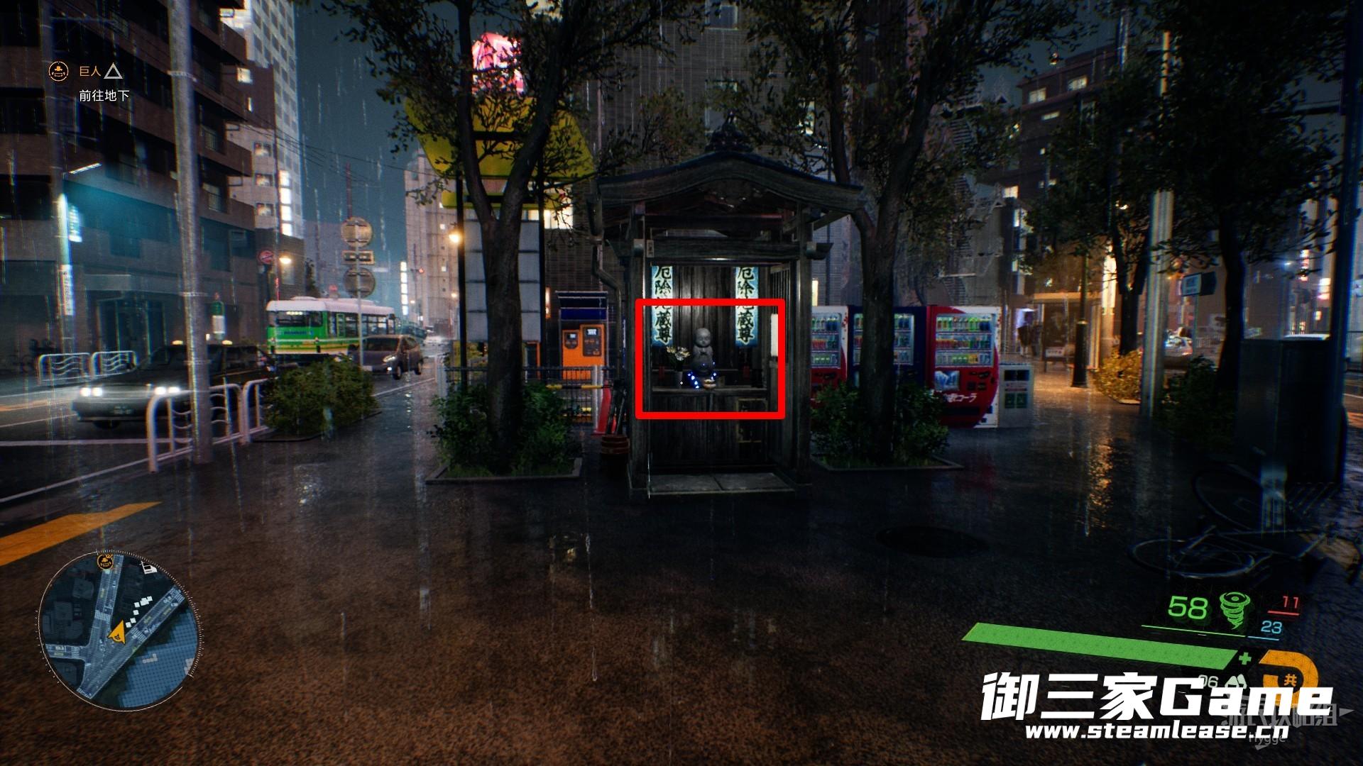 第一个水地藏像位于大楼之间小空地的神龛中,注意此处会刷出敌人,注意及时将其消灭或快速离开。