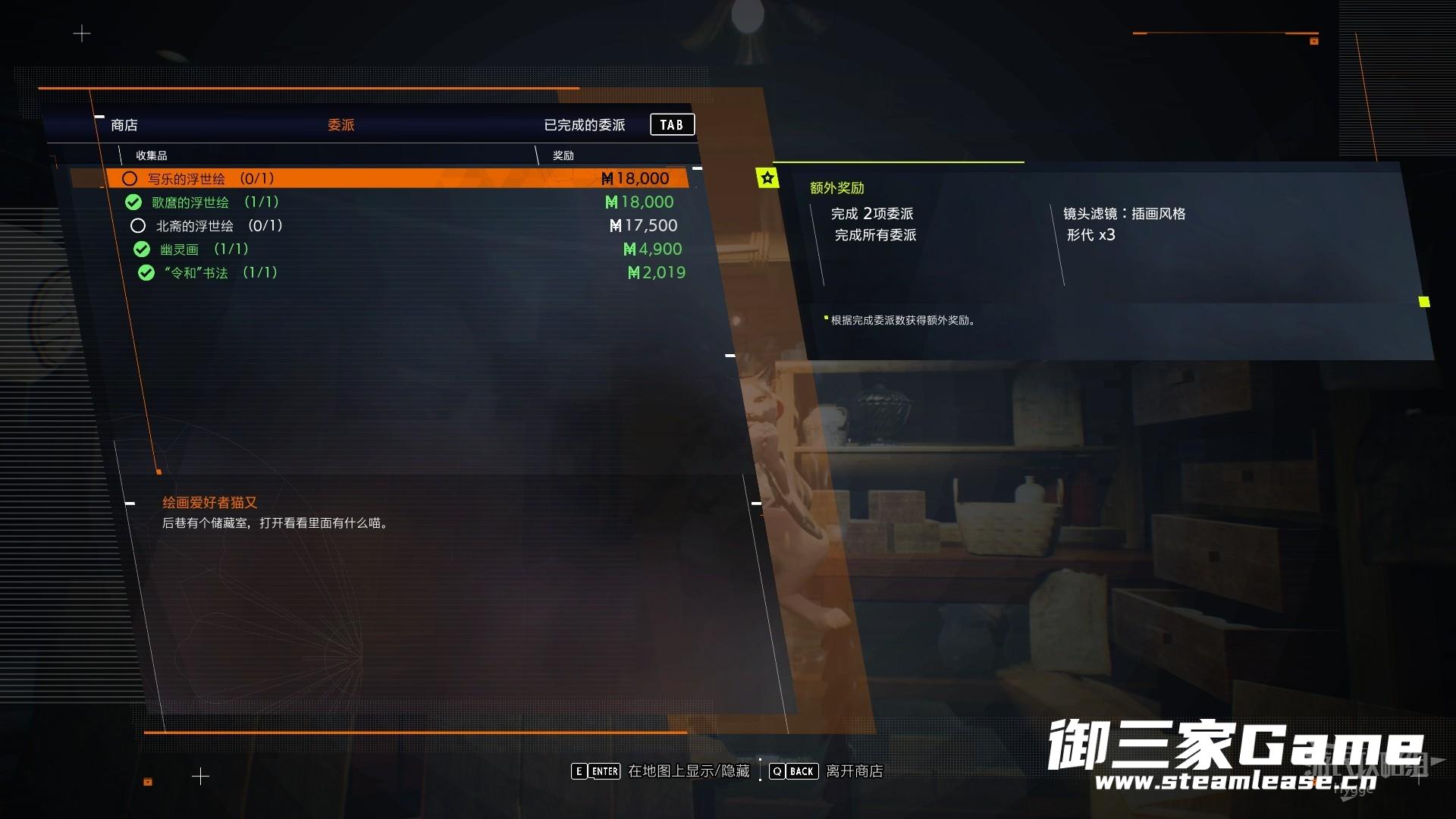 该类收集品可以在位于谷深神社和森手神社之间的【绘画爱好者猫又】处兑换奖励。