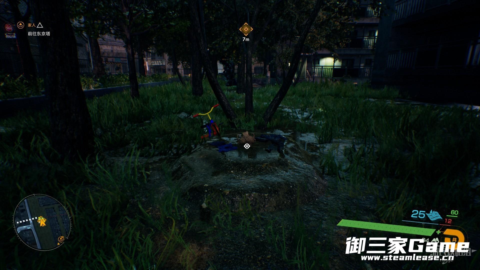 在草地中的儿童自行车旁可以找到该收集品。