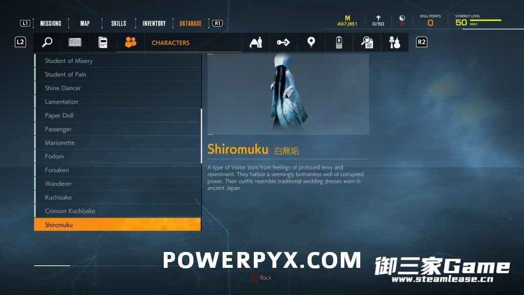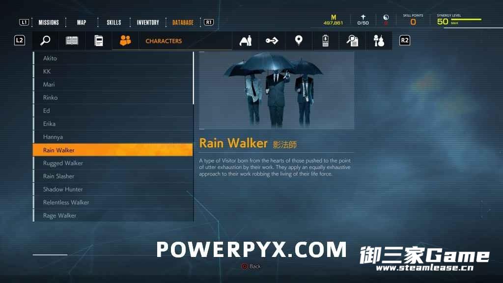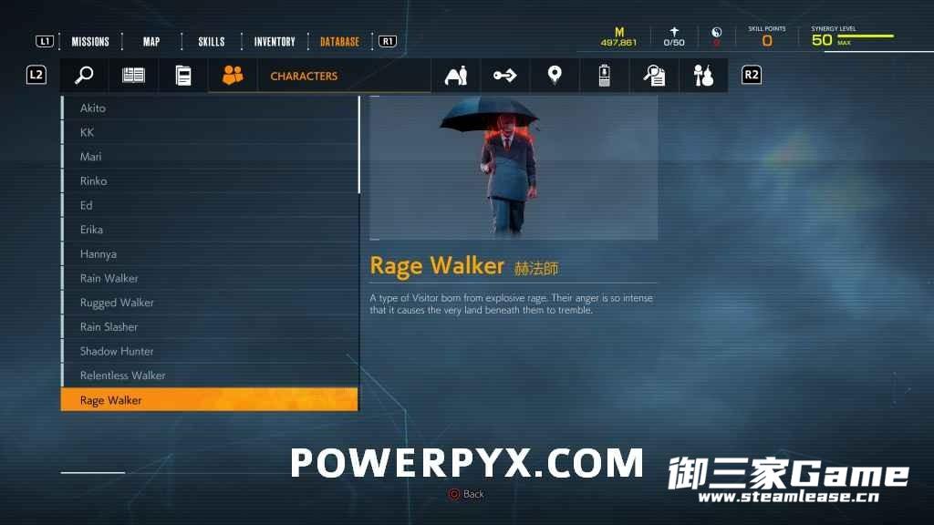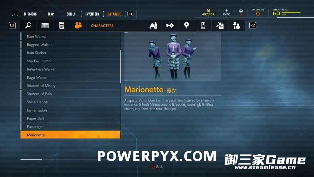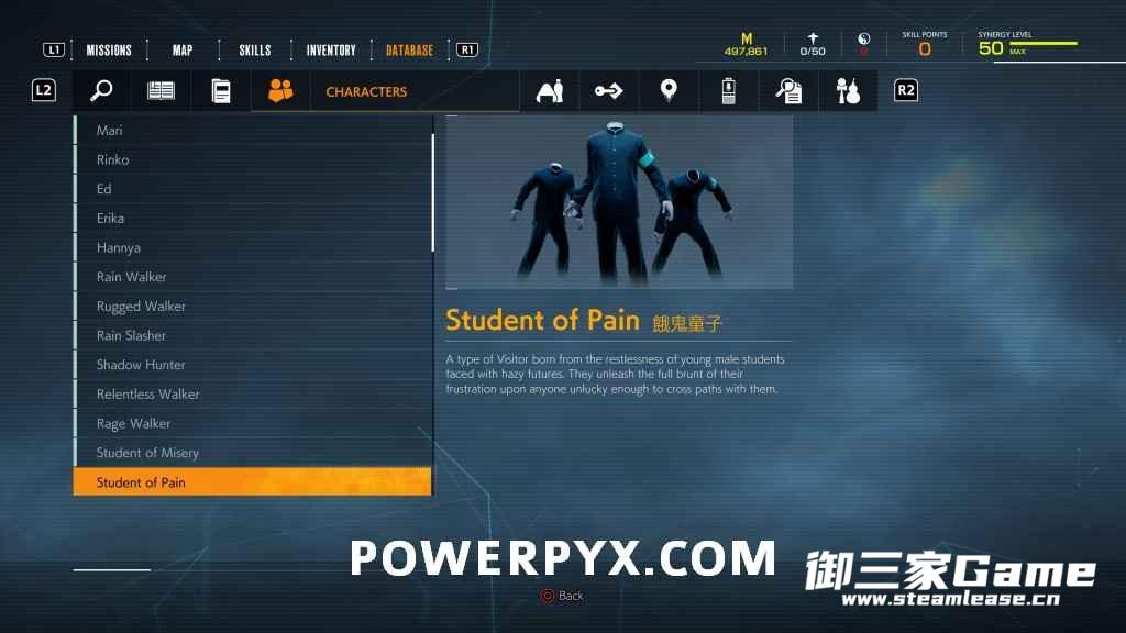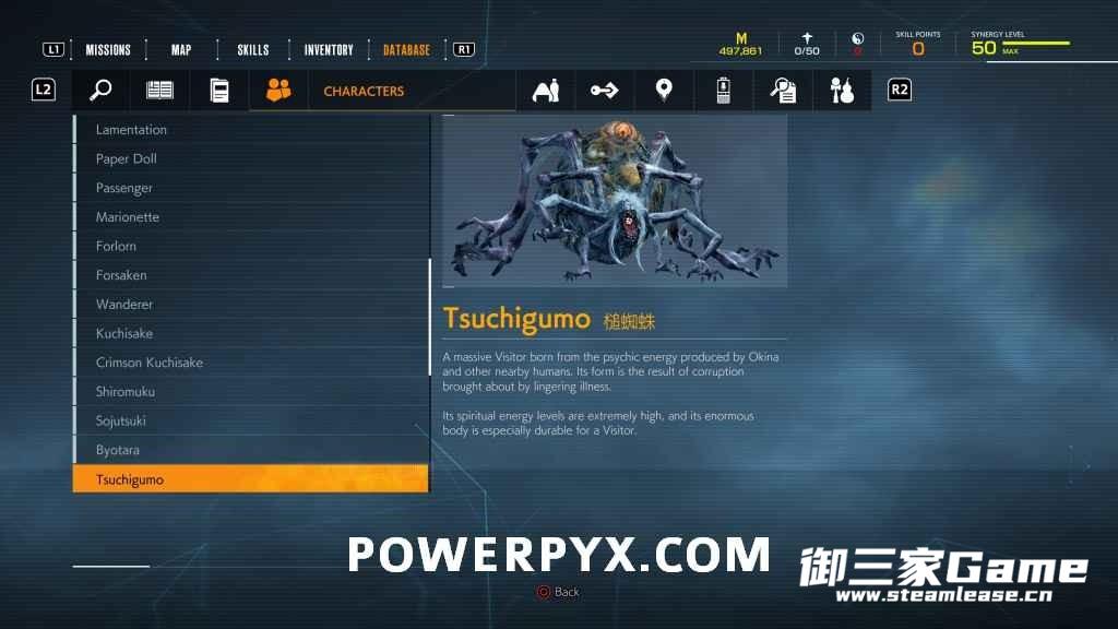 游戏中一共有23种异访者(19种普通敌人和4个BOSS),其中“雨童”和“血童”比较难遇到,而且这两种敌人在发现我们时会立刻逃跑,因此遇到时一定要赶紧追上去。