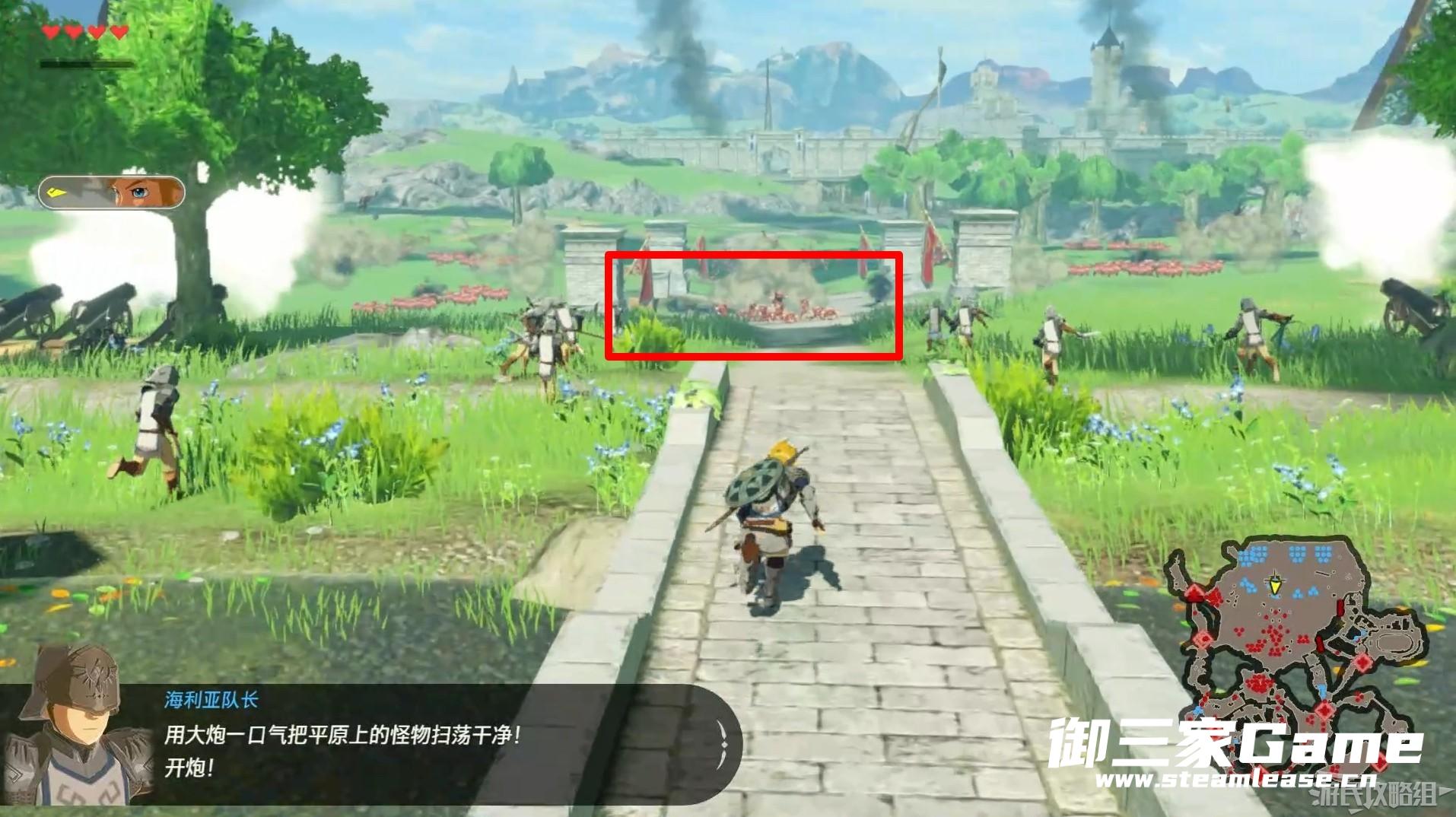 正在此时,林克恰巧看到正在被怪物追击的英帕。正当林克准备帮助英帕解围时,英帕手中的古代扩充零件激活了守护者,同时从广场地下升起了一座高耸入云的塔。