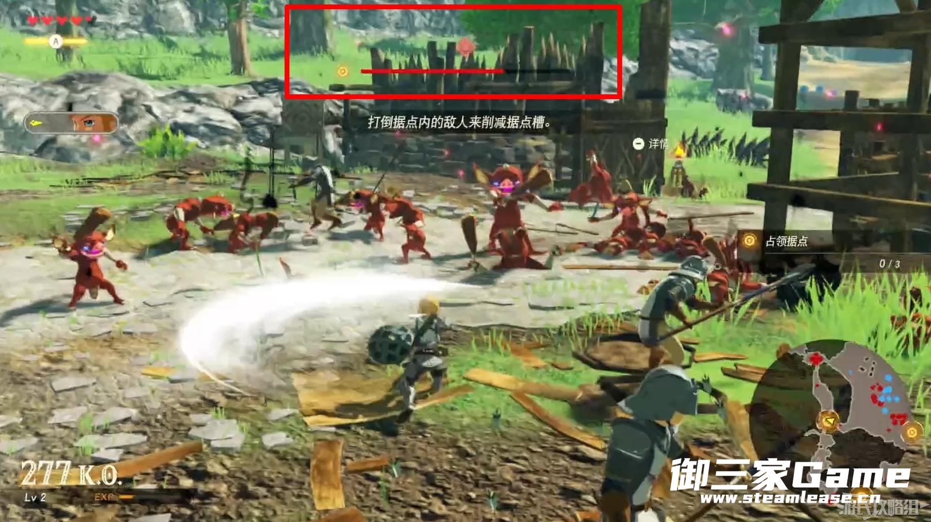 消灭莫力布林后地图上会标注出敌人的三个据点位置。来到敌人据点后,屏幕上方会出现据点槽,消灭敌人可以削减据点槽,在据点槽降低至一定程度后会出现强力敌人,消灭强力敌人完成据点占领。