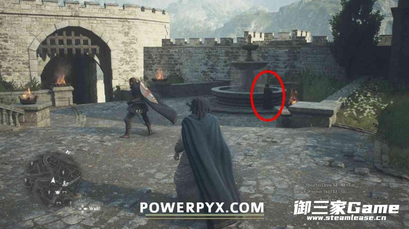 来到下图所示的位置与NPC对话得知鲁道夫想要NTR监视团团长,所以派团长去击败无头骑士。