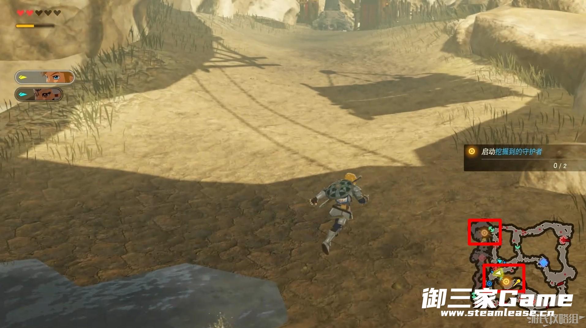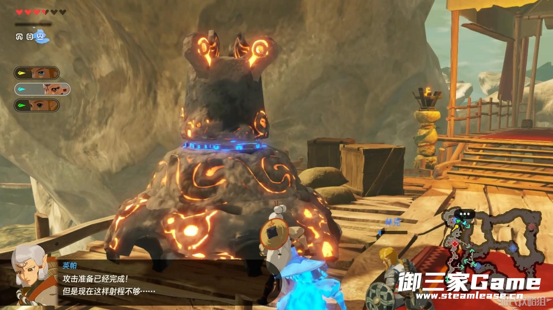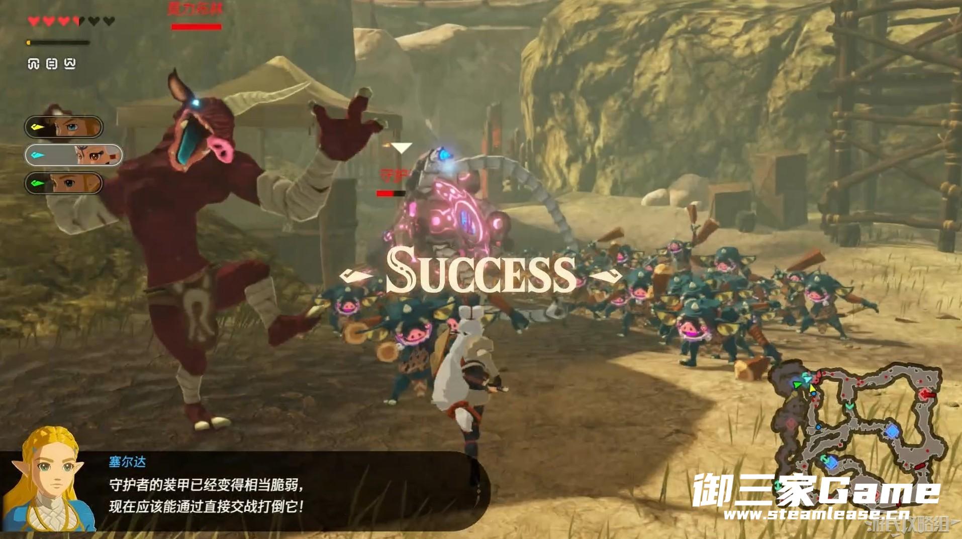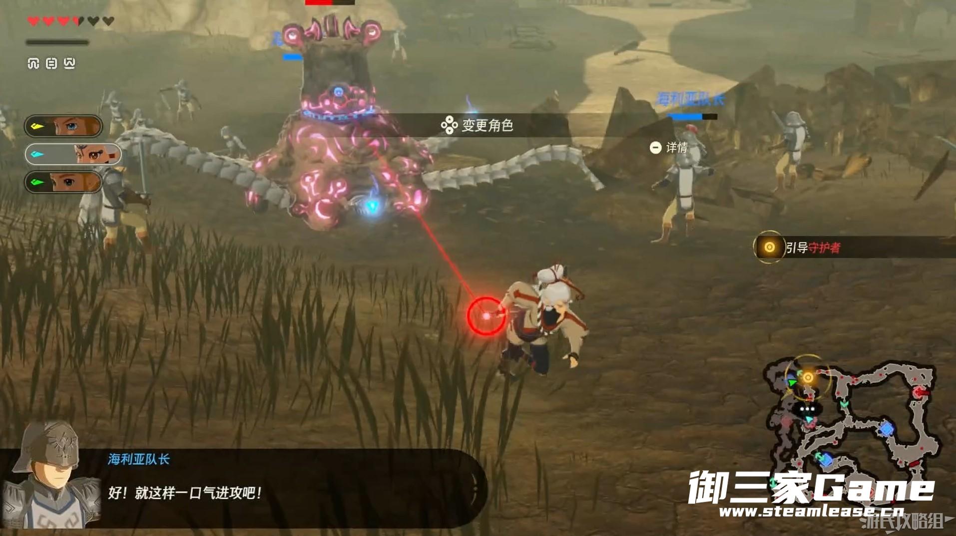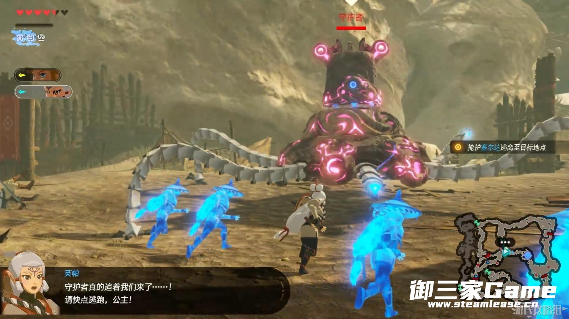 正当众人逃离守护者的攻击时,前方出现了大量怪物。消灭怪物,掩护塞尔达前往地图中间的任务地点。