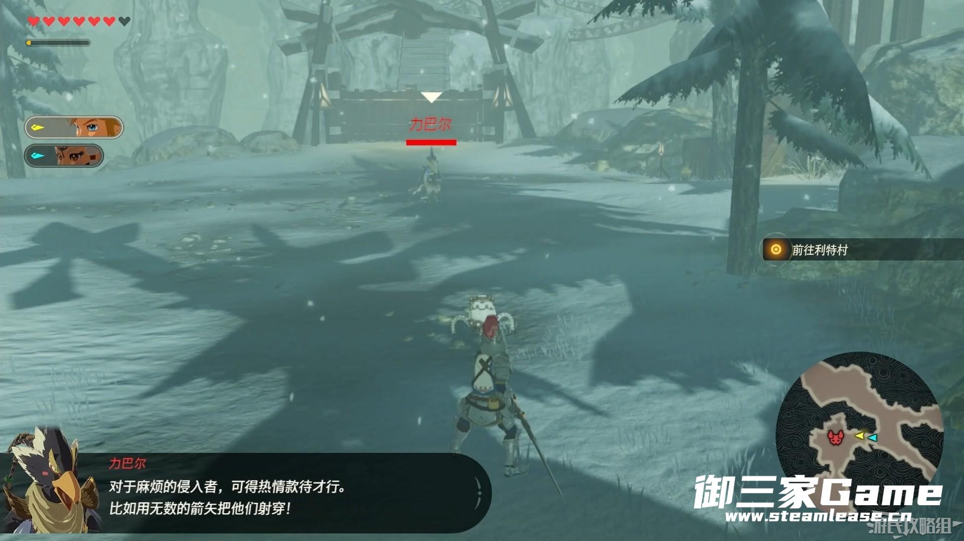 塞尔达与林克等人避开怪物大军,通过雪原前往利特村寻找风神兽瓦·梅德的操控者力巴尔。但力巴尔却将塞尔达一行人当作前来进攻利特村的敌人,于是他派出利特族的战士阻拦塞尔达等人。