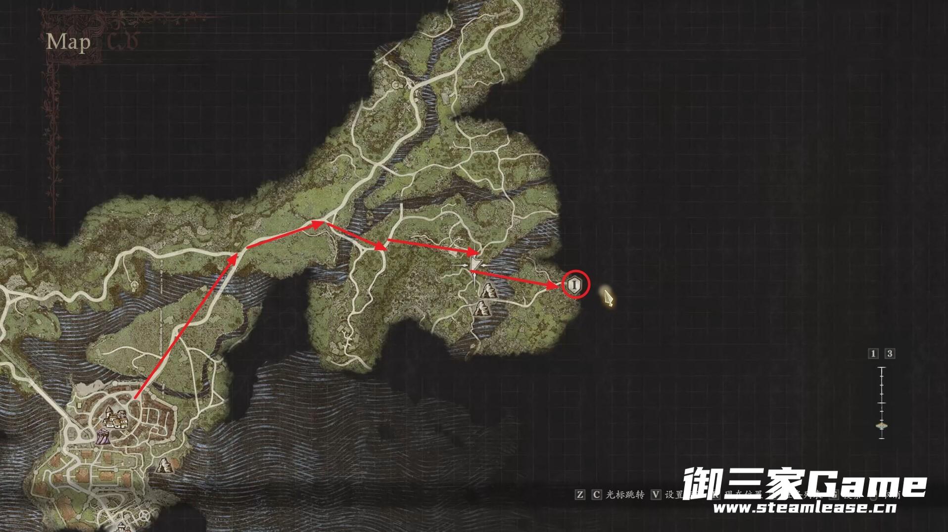 从维纶沃斯出发按照下图的路线来到所示的未知村落处。
