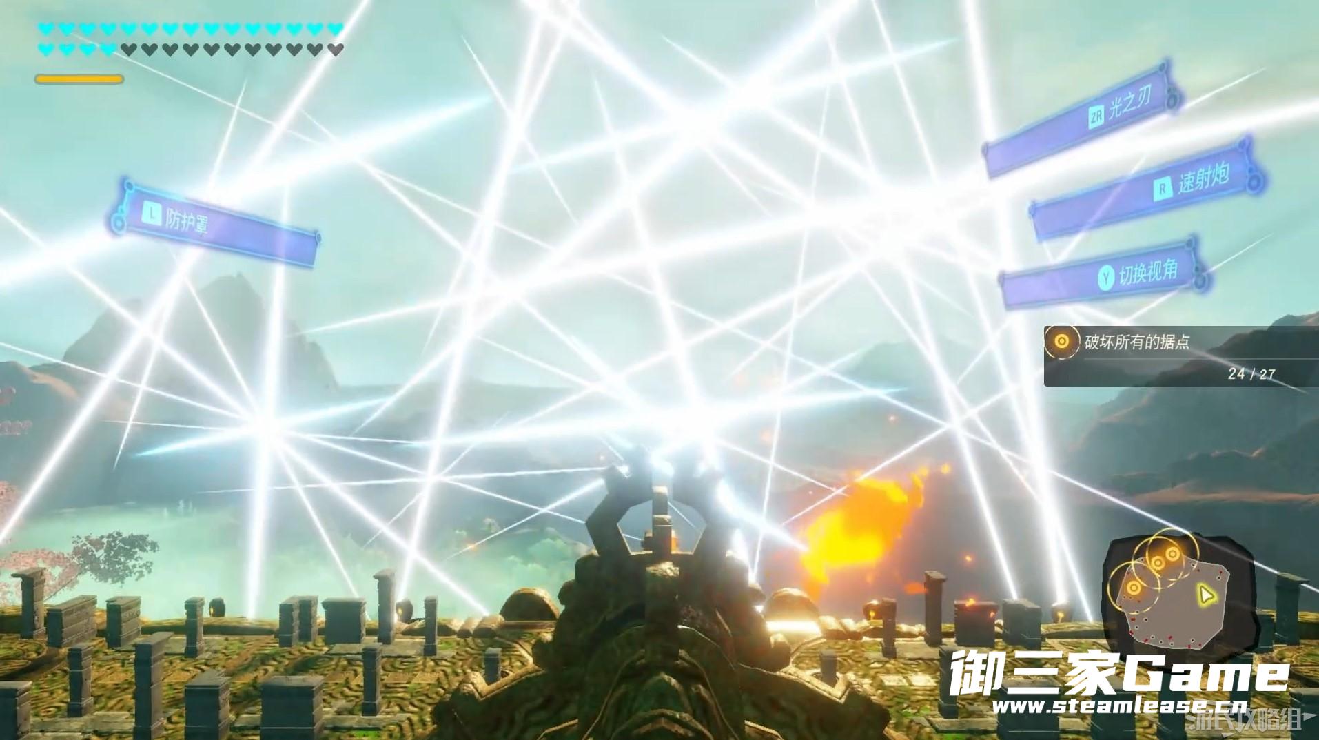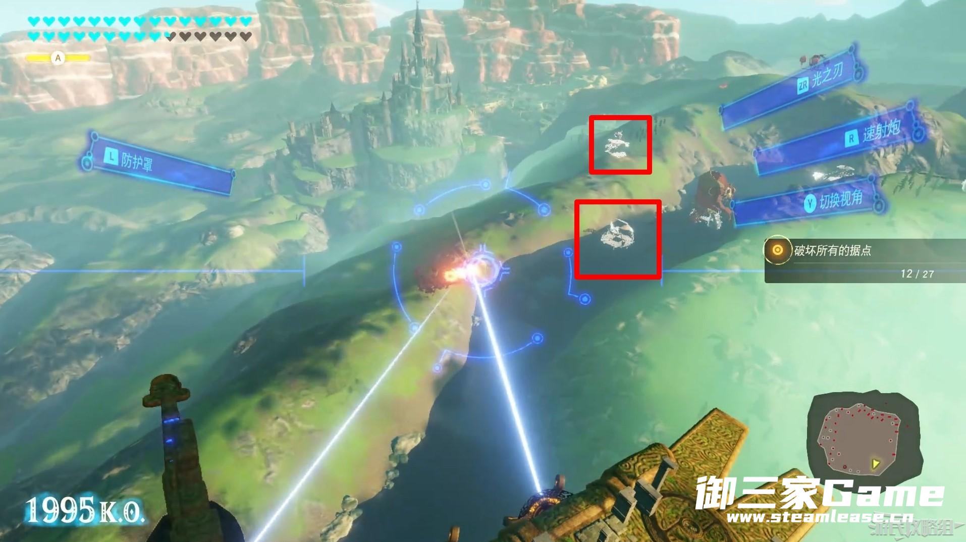 消灭地面上的27个据点即可完成本阶段,Y键可以将视角切换至神兽下侧的火炮,攻击下方地面上的敌人。
