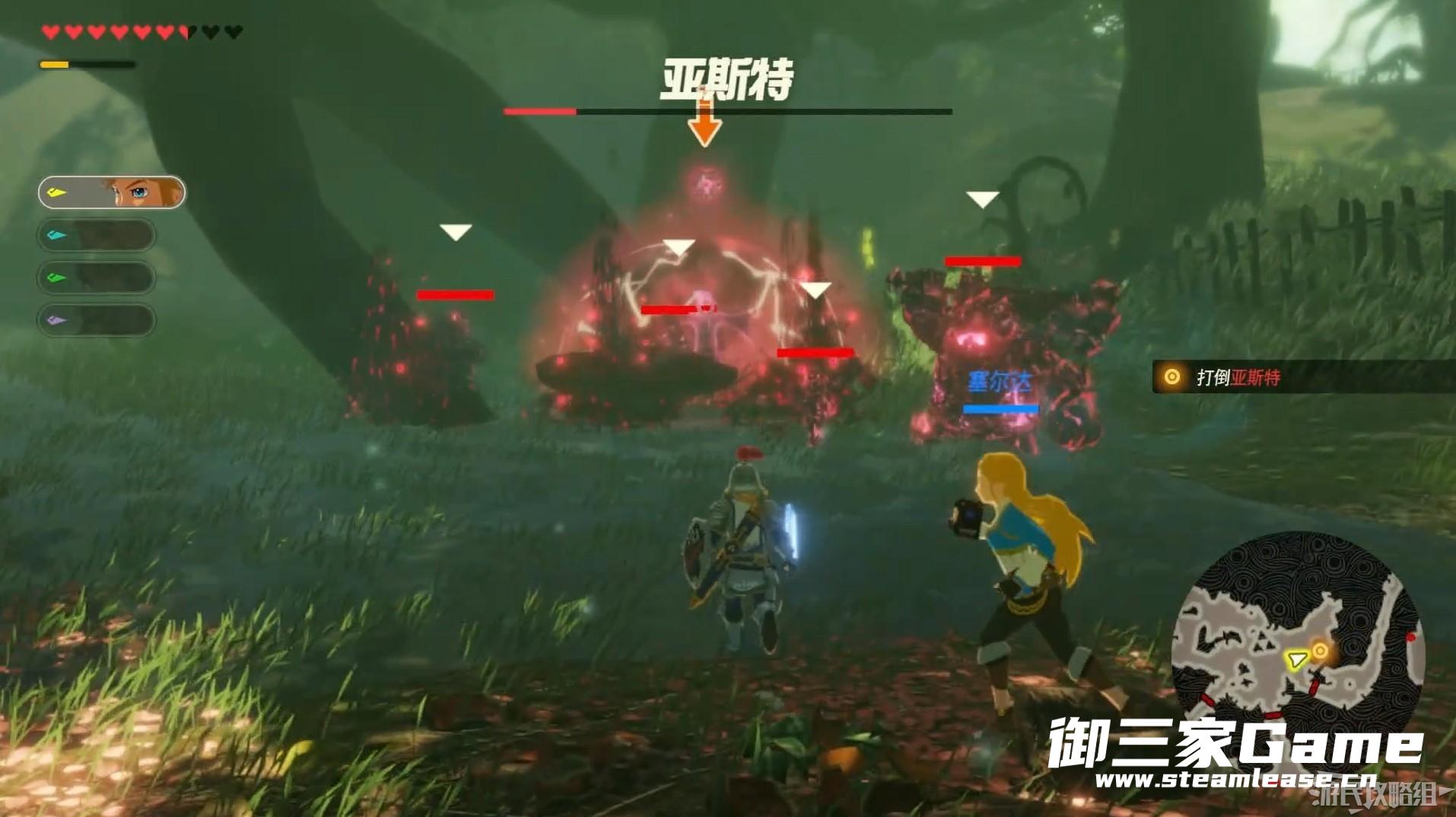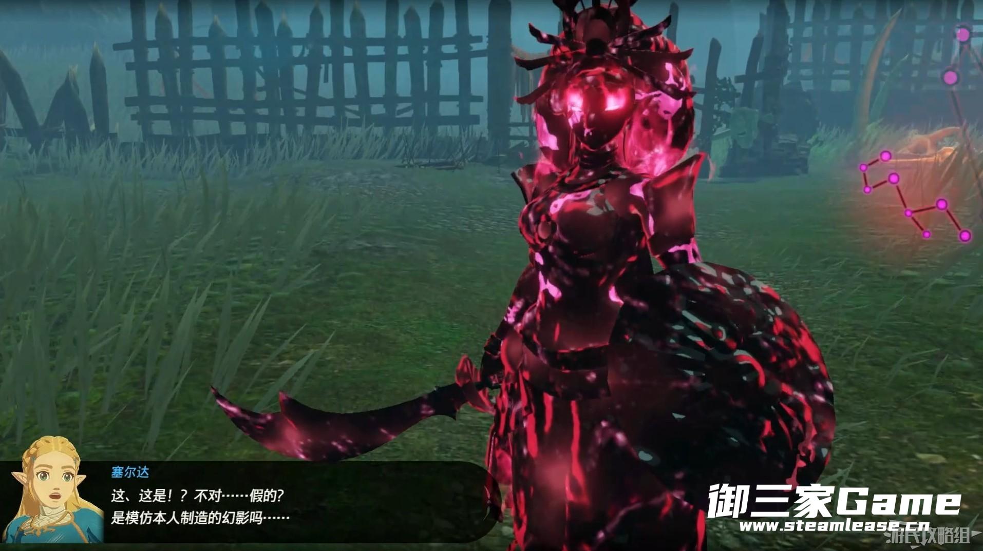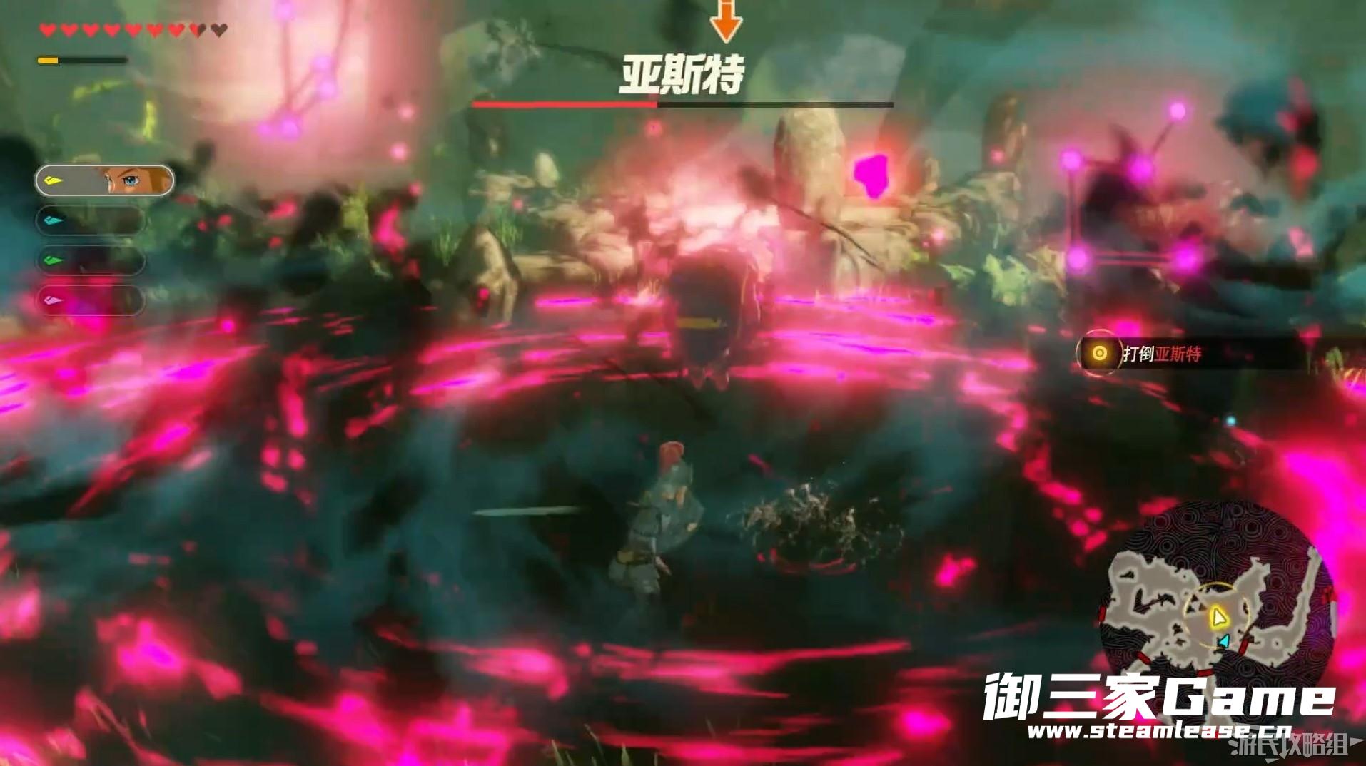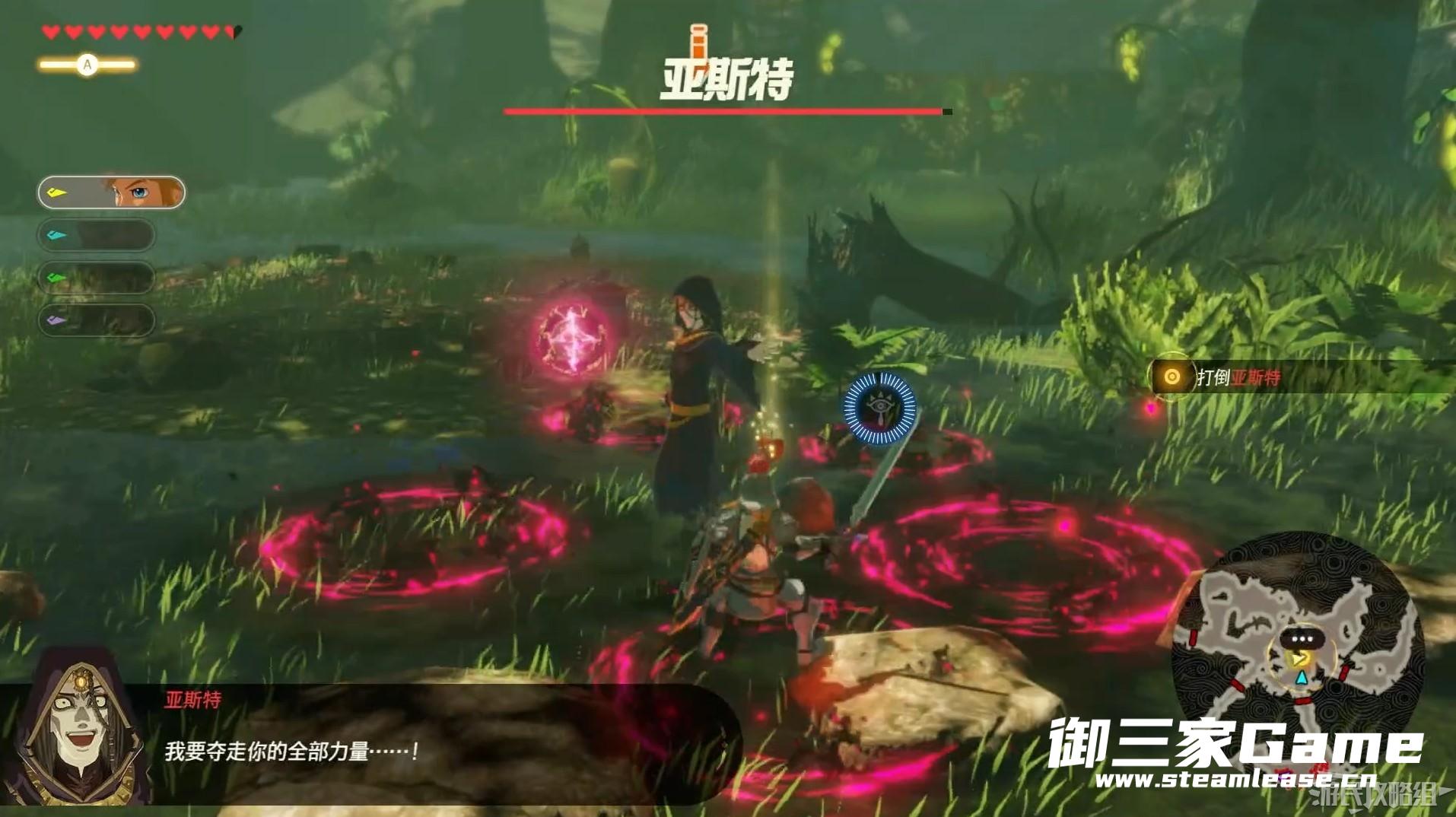 随后林克将驱魔之剑拔出,消灭四名灾厄气息幻影后与亚斯特开始战斗。
