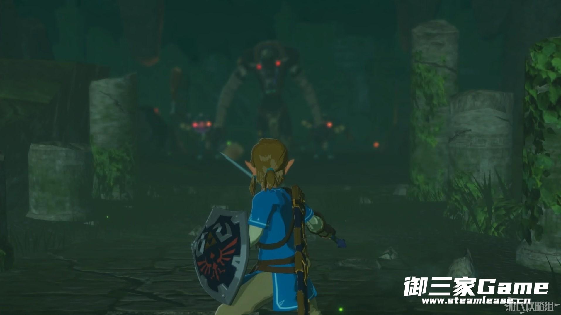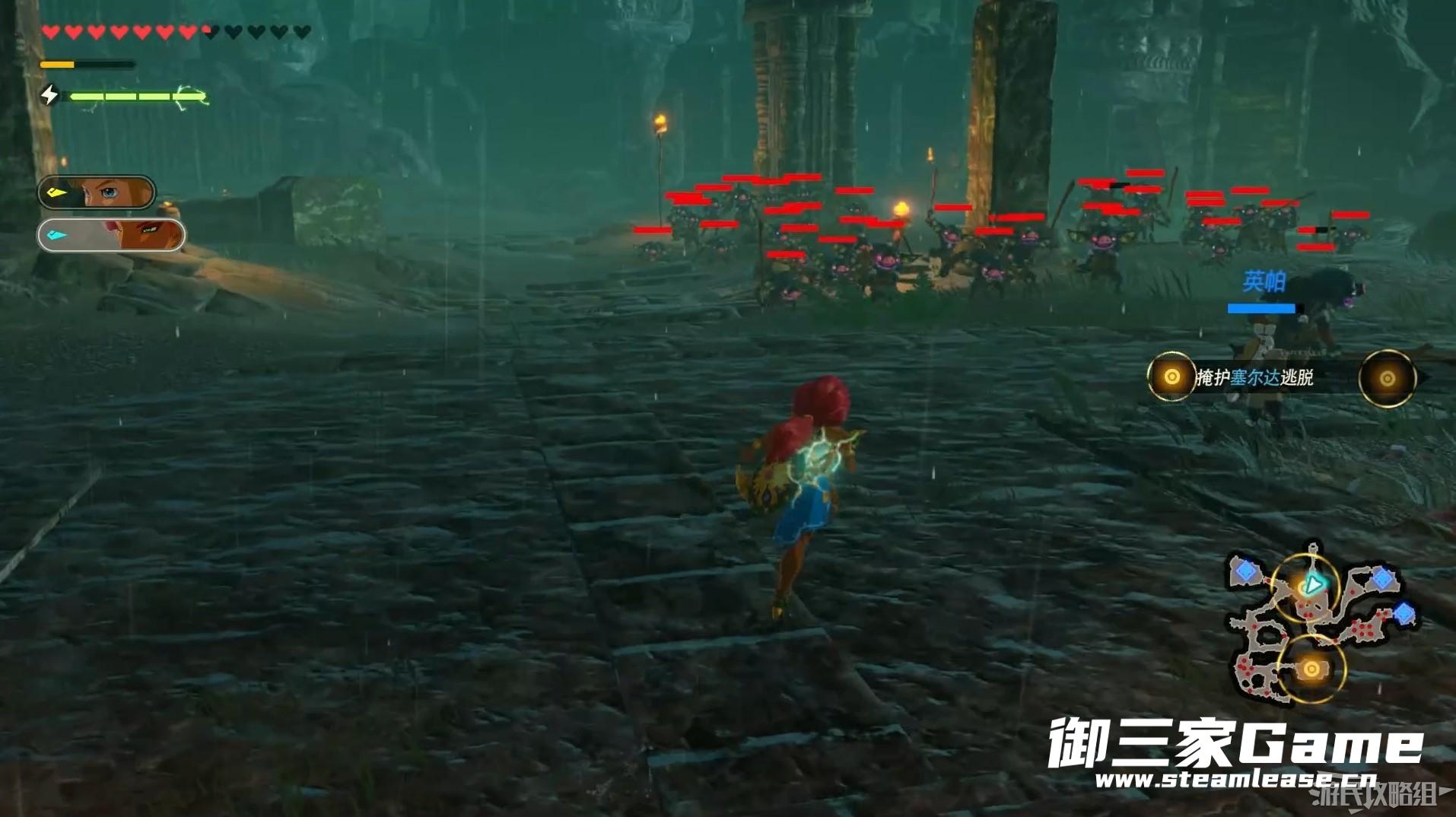 将袭击塞尔达的雷之莫力布林击败后,掩护塞尔达返回城堡,消灭图中的敌人。
