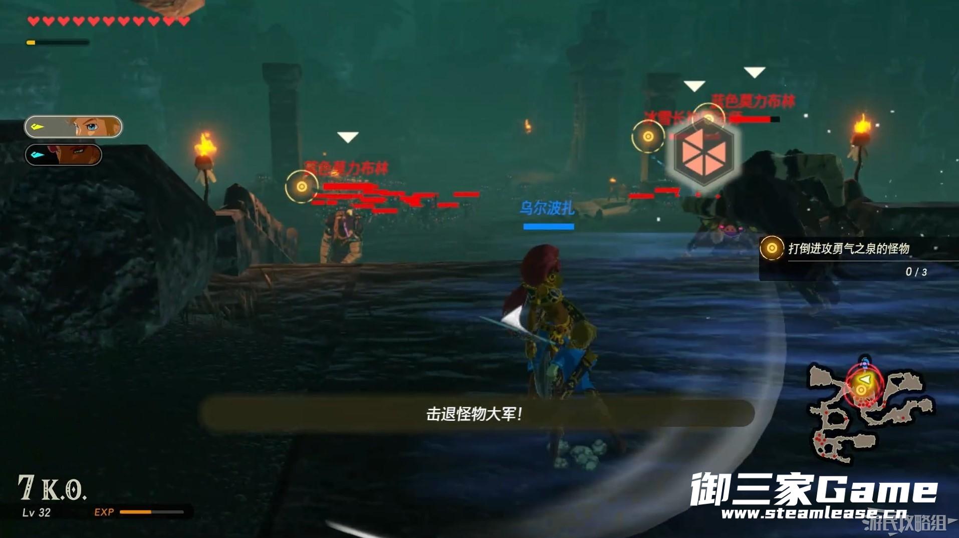 在我们占领据点时塞尔达遭受怪物的袭击,赶回勇气之泉支援塞尔达。