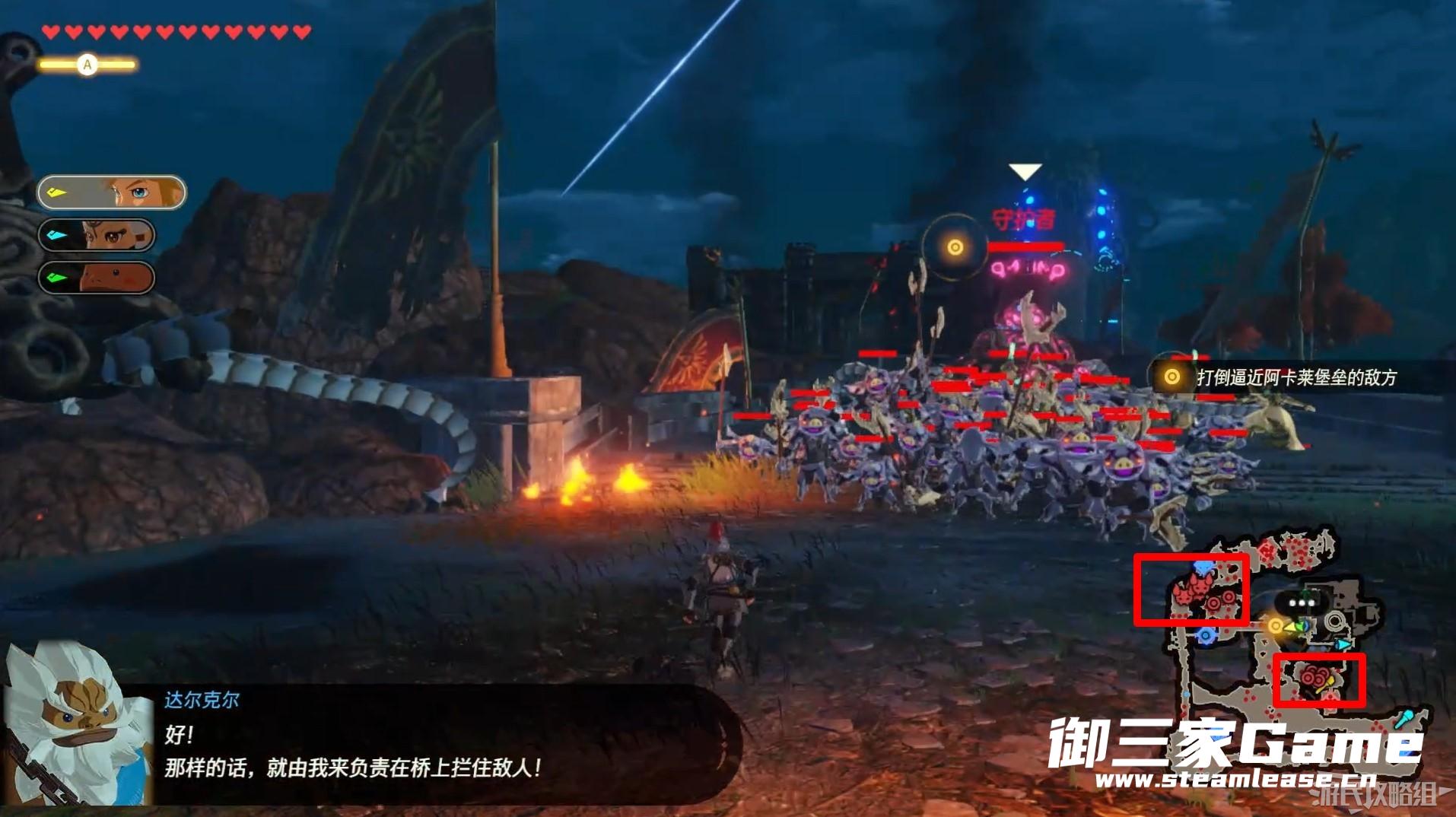 众人来到阿卡莱堡垒后优先救援还在苦苦抵抗的海利亚队长们,一共需要救出三名队长,可以将角色分头行动快速将队长们救出。