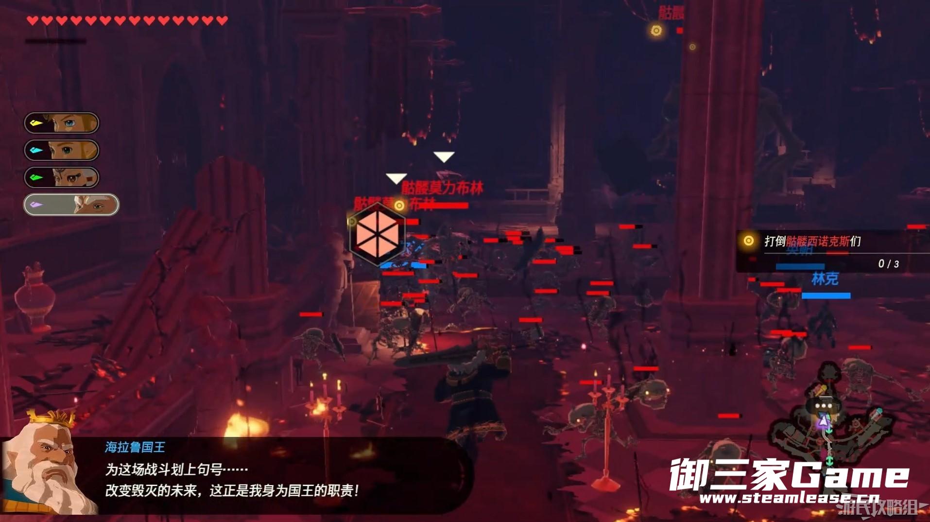 进入城堡后消灭大厅中的三只强力骷髅敌人。