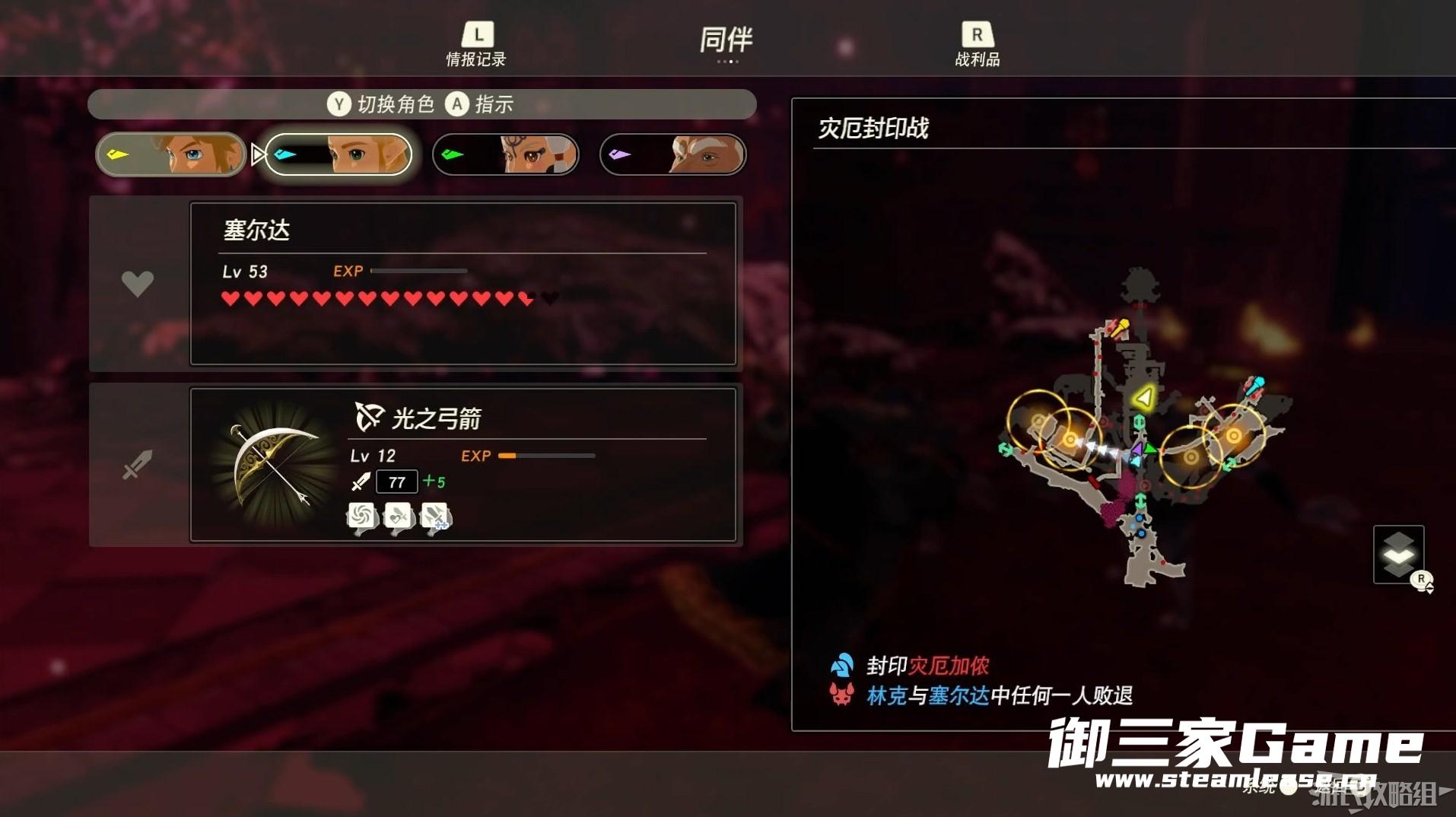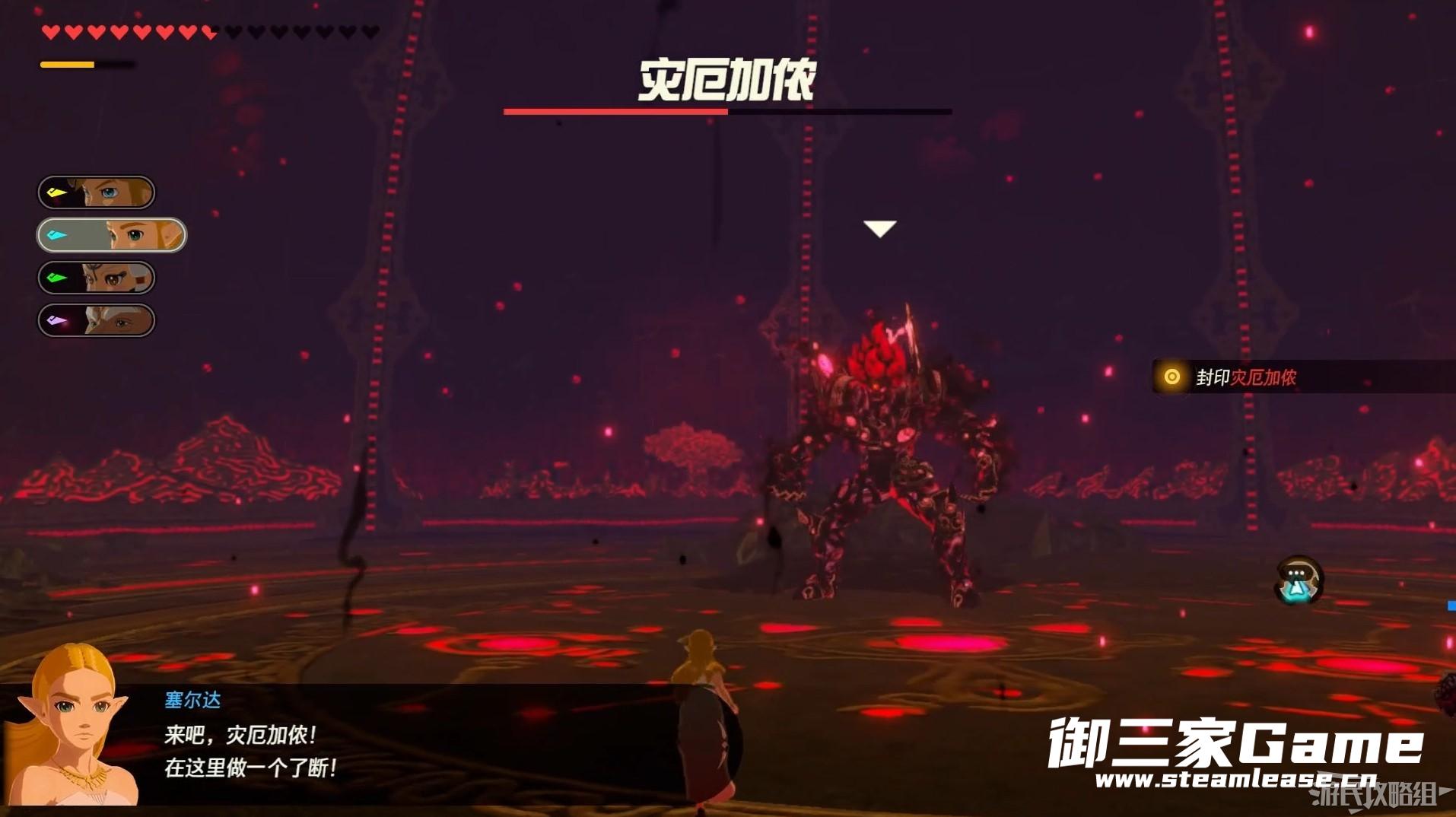 灾厄加侬会连续使用需要我们打断的技能,因此建议在开始本关卡前将海拉鲁地图上可以缩短希卡道具的支线任务完成。