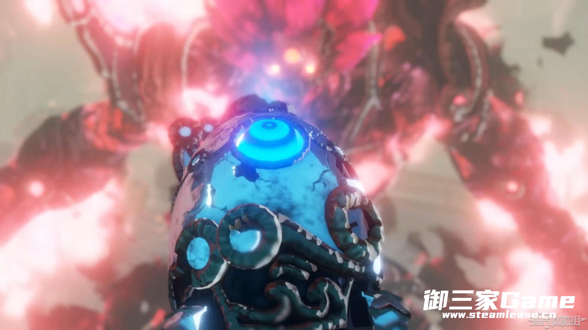而那只从未来穿越回来拯救海拉鲁的守护者,也被灾厄的气息感染,随后开始与其战斗。被控制的守护者会在自身周边继续电能,产生蓝色光罩随后释放闪电,离开蓝色光罩范围即可。