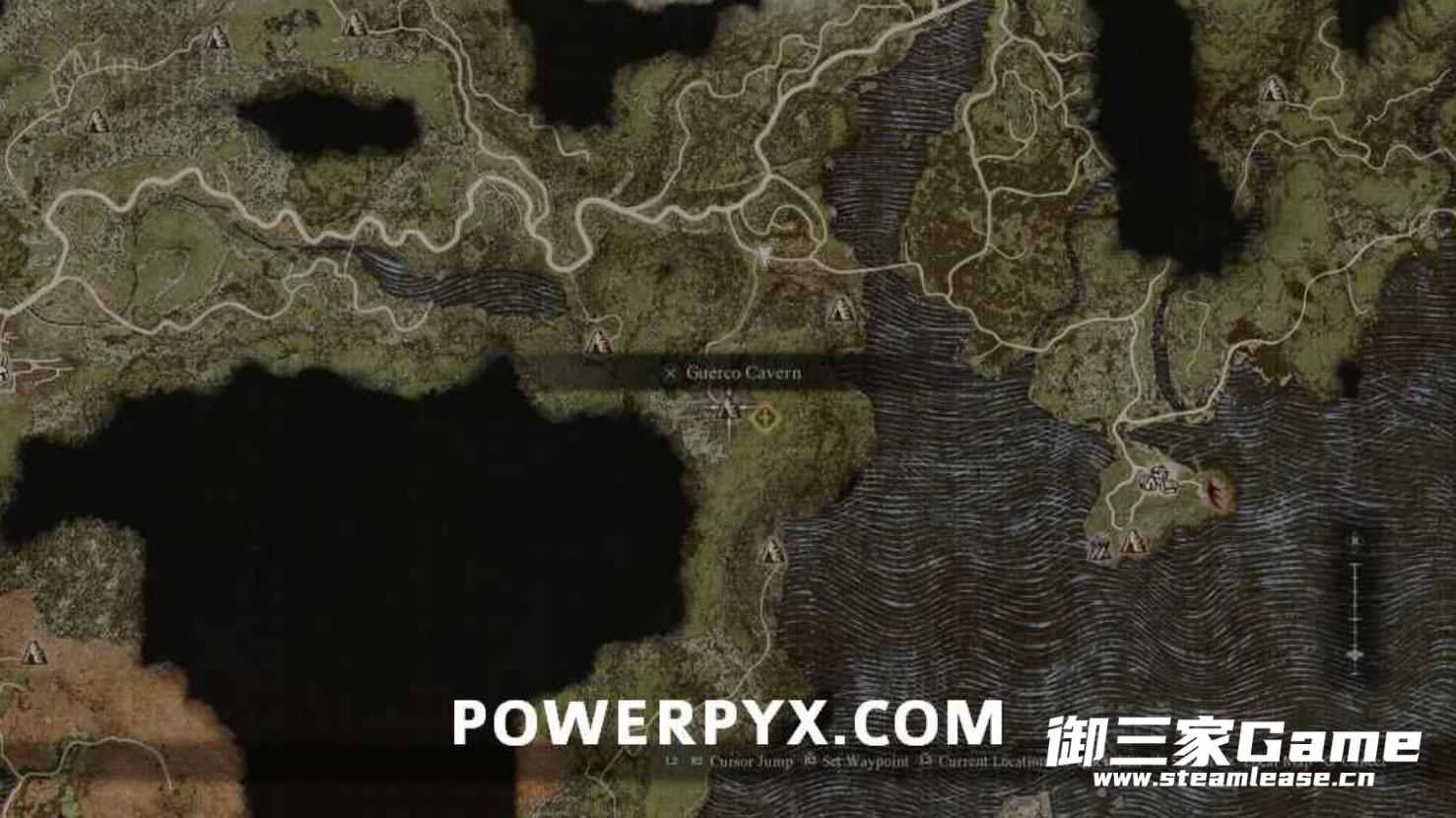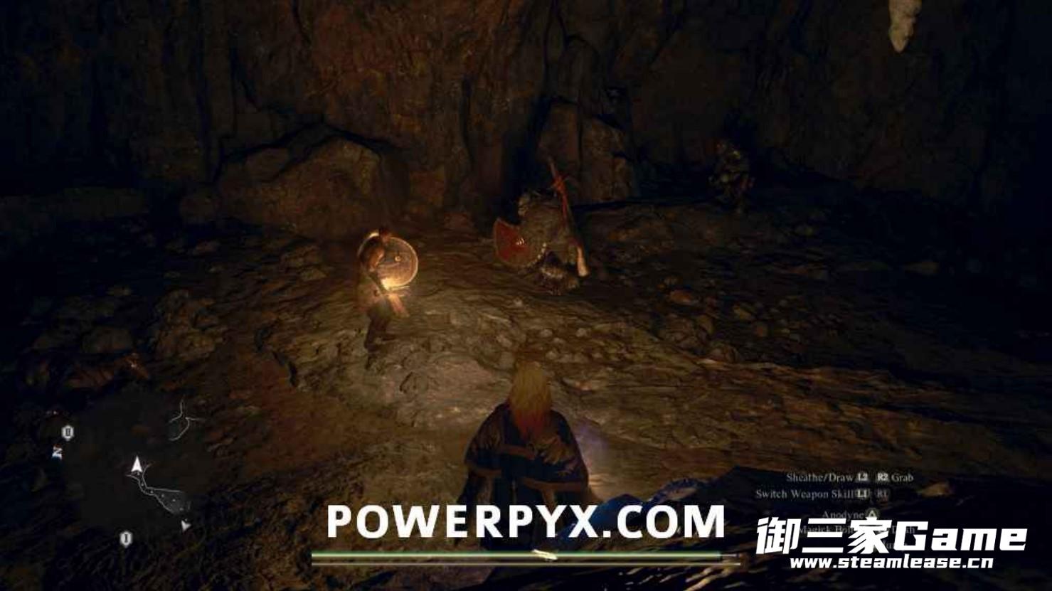 战斗结束我们需要沿着下图所示的路线追逐拉格纳,进入前方的洞穴内与拉格纳,接着带拉格纳走出洞穴。