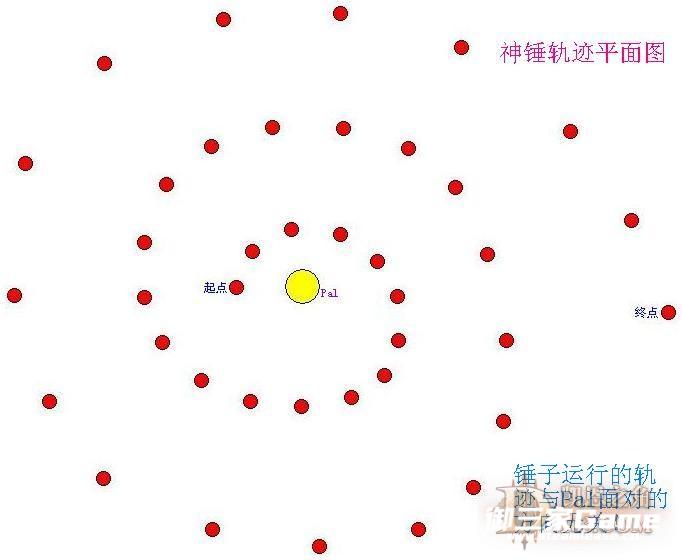 对付比较弱的怪物就直接走到怪物身边施放,尽量让他们处在你的近身9点到3点的方位(即轨迹图最内圈的上半部分),保证锤子一定能击中(部分大体型怪物即便站在你的近身3到6点的方位也会被击中);