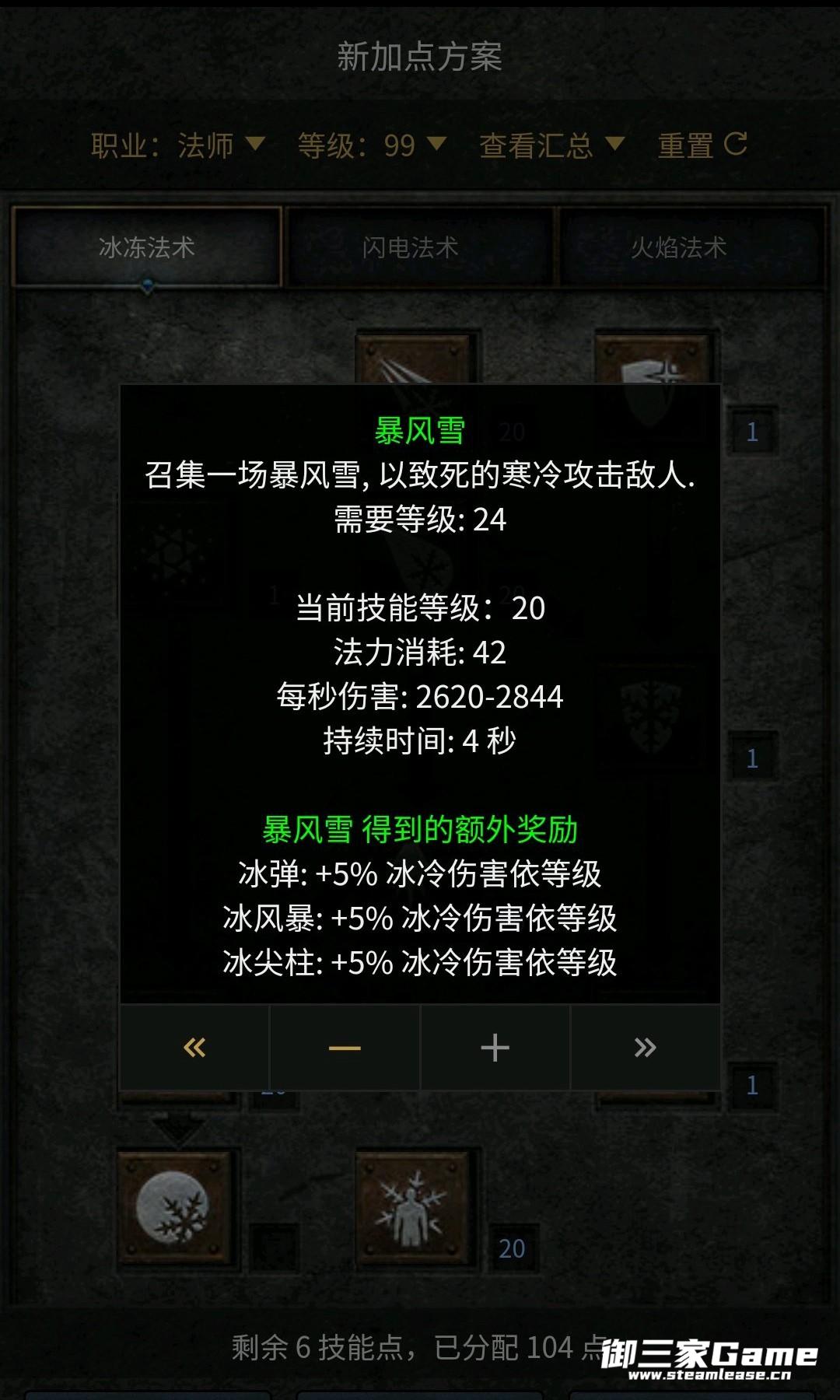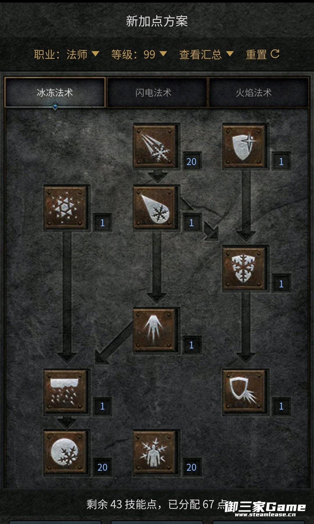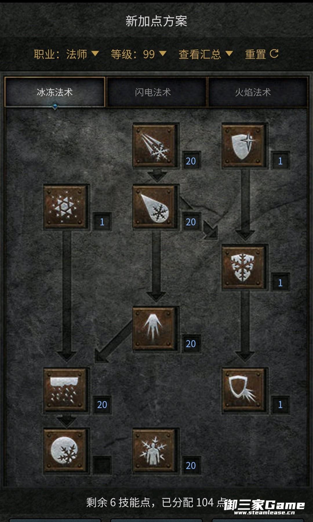 还有一电,暴风雪冰法,点满,需要104个技能点,而冰封球冰法只需要67个。剩下的技能点可以点寒冰装甲和能量护盾,保命能力更强