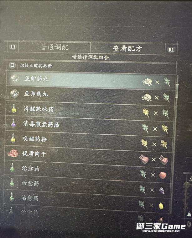 药草+任意水果=回复药