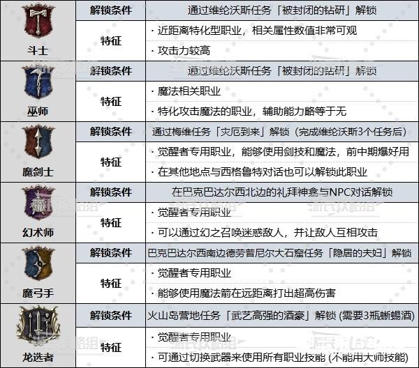 ※部分职业的解锁方式并非固定时间和地点,所有职业均可脱离主线解锁,只是跑图距离和解锁难度会有区别。本文只介绍相对比较容易解锁的时间和位置,如有其他解锁方式大家可以在评论区补充。