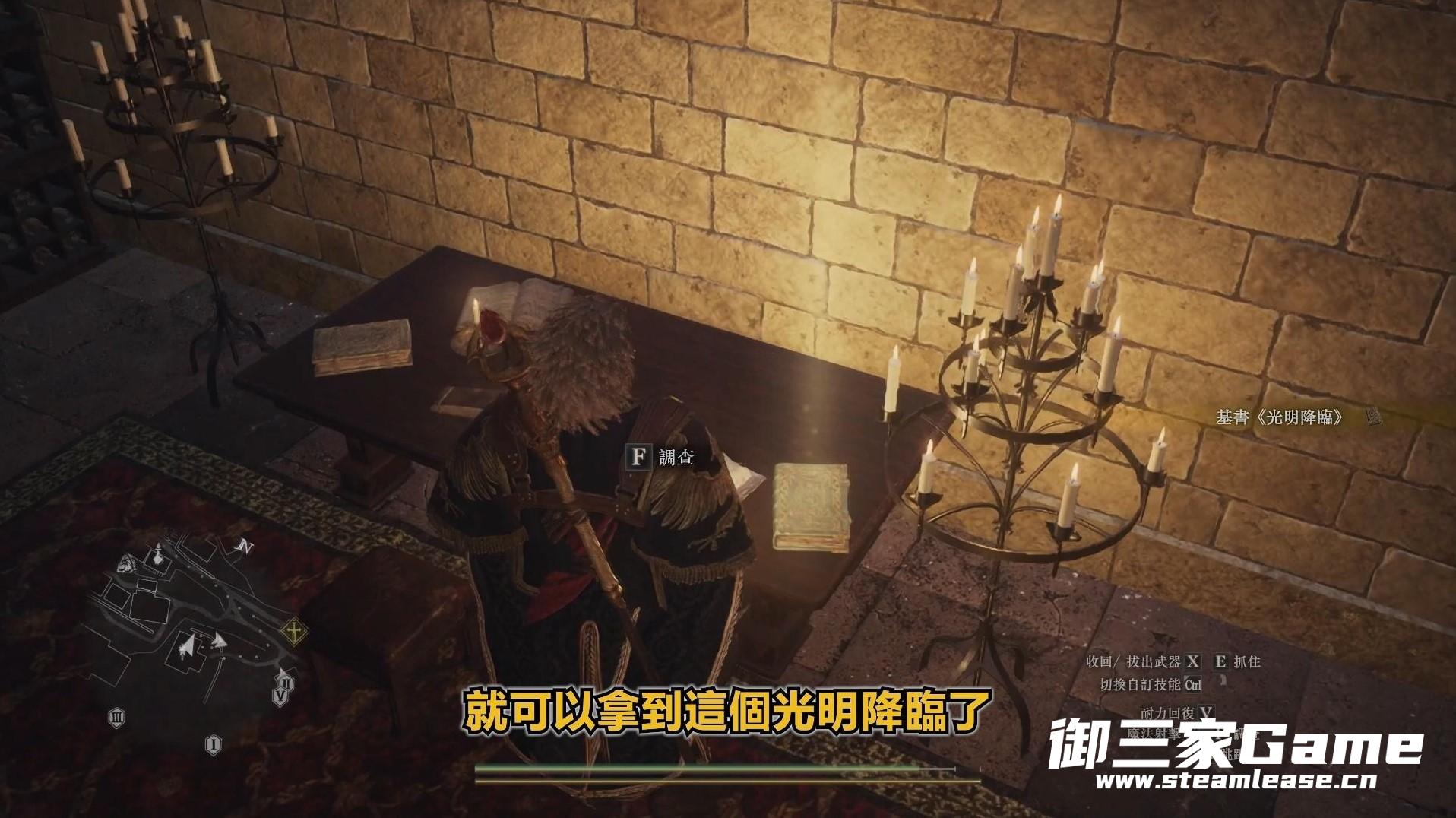 2.去关口旅宿之镇,米尔汀宅邸后方的墙,跳到2楼阳台,进去拿"光明降临"