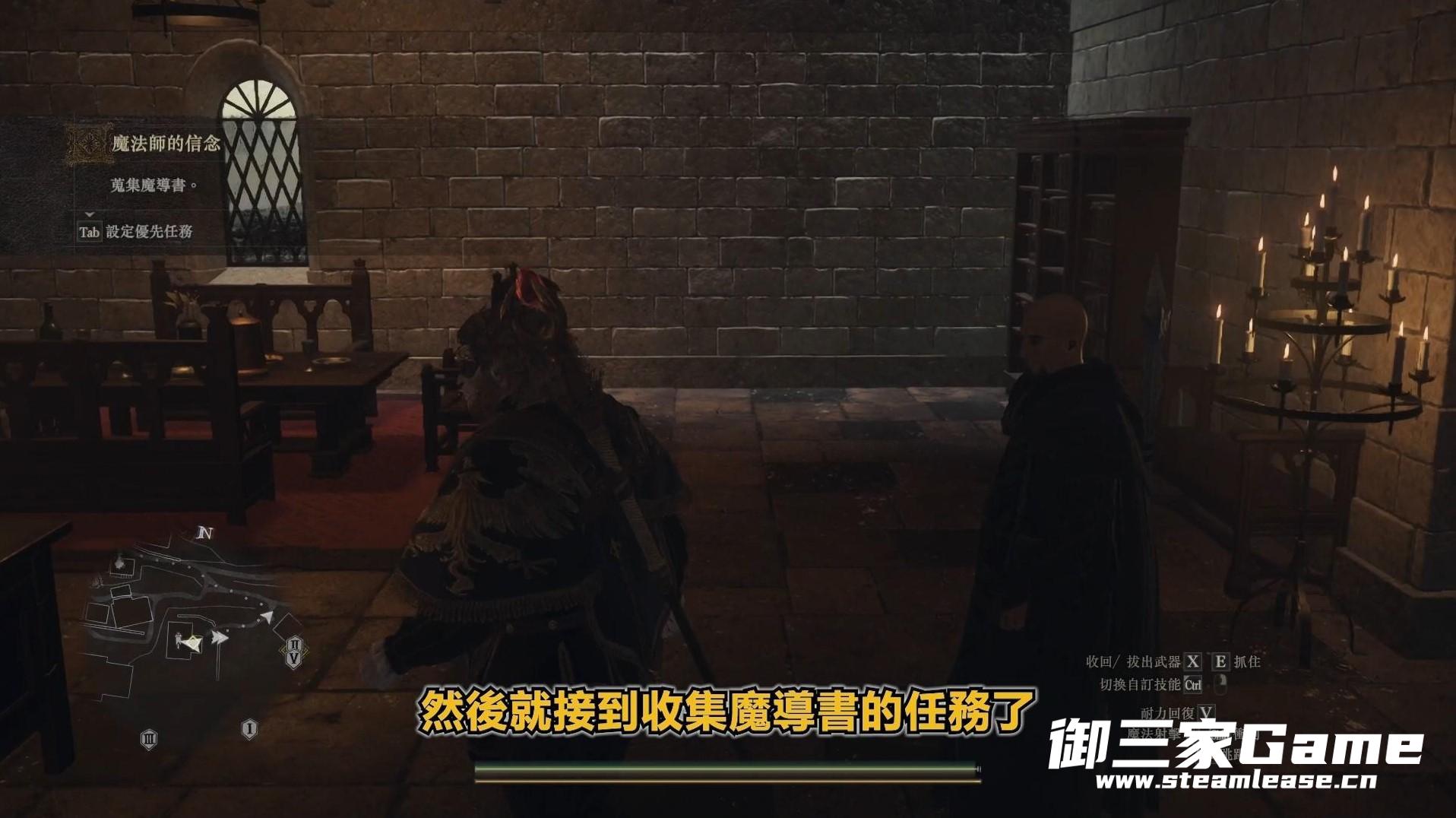3.穿上谒见外套+长裤,去米尔汀门口找他,进去接魔导书的任务